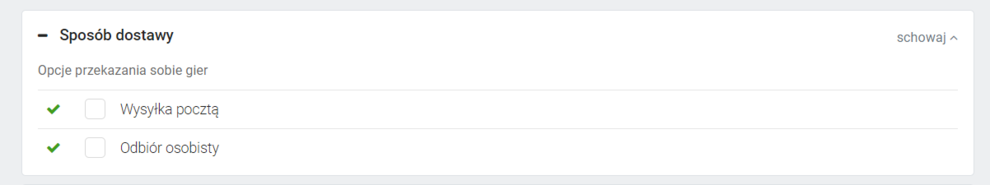 Przy wystawianiu gier na wymiane jako sposób wymiany są do wyboru jedynie dwie opcje: