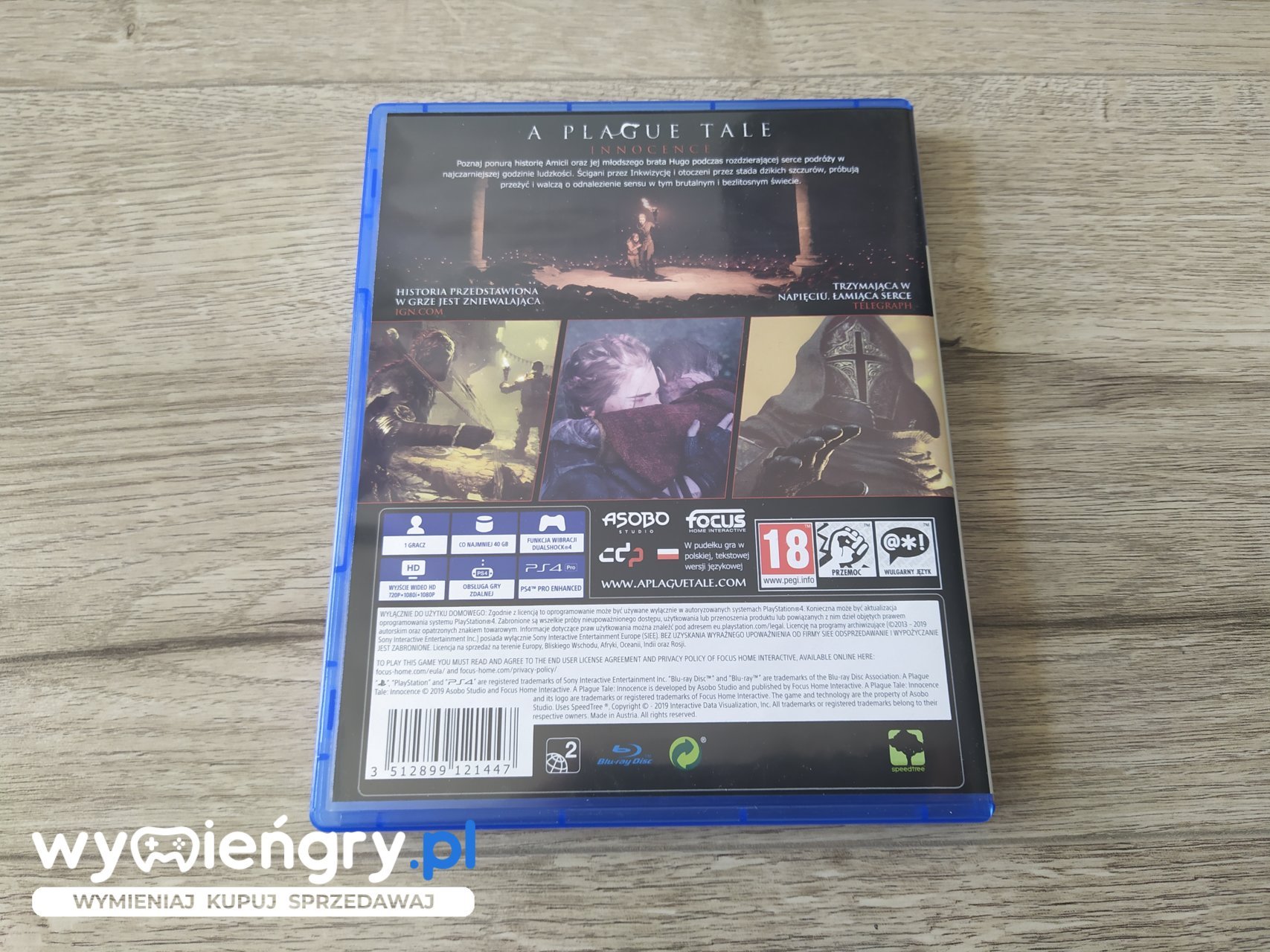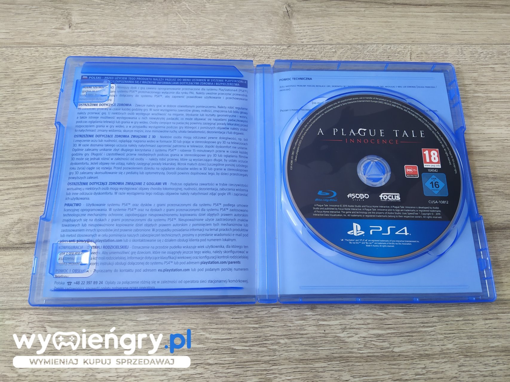 A Plague Tale: Innocence to mroczna, mrożąca krew w żyłach trzecioosobowa gra przygodowa zawierająca elementy gry akcji, gry eksploracyjnej i skradanki, opracowana przez Asobo Studio na PlayStation 4, Xbox One. Jest rok 1349. We Francji szaleje zaraza. Amiciai jej młodszy brat Hugo uciekają przed inkwizycją przez zrujnowane epidemią wioski. Aby przeżyć, muszą połączyć siły z innymi sierotami i manewrować pomiędzy niebezpiecznymi kłębowiskami szczurów, wykorzystując światło i ogień. Więź pomiędzy skazanymi na okrutny los sierotami to ich jedyny sprzymierzeniec w desperackiej walce o przetrwanie podczas najmroczniejszych dni w historii ludzkości.