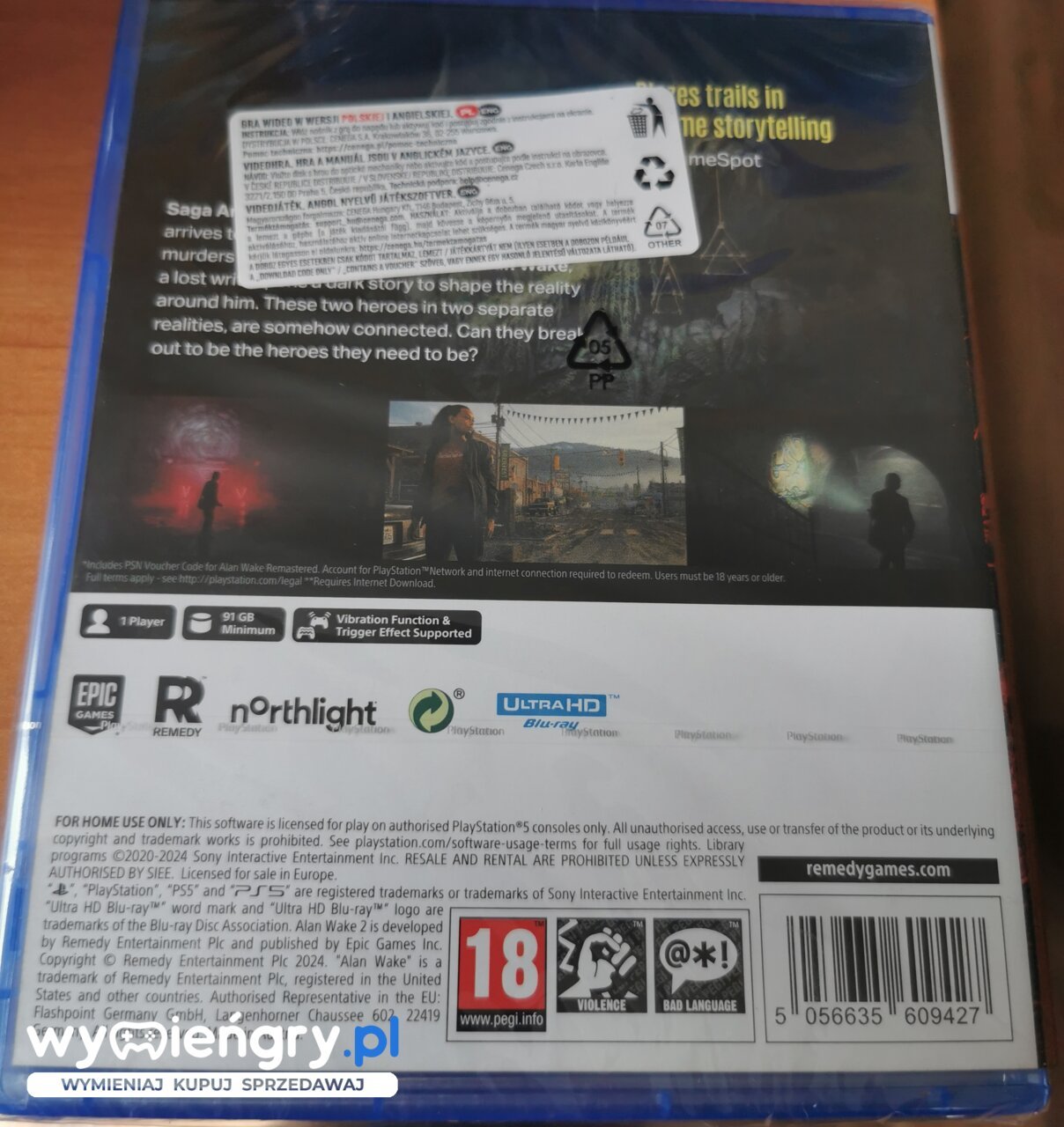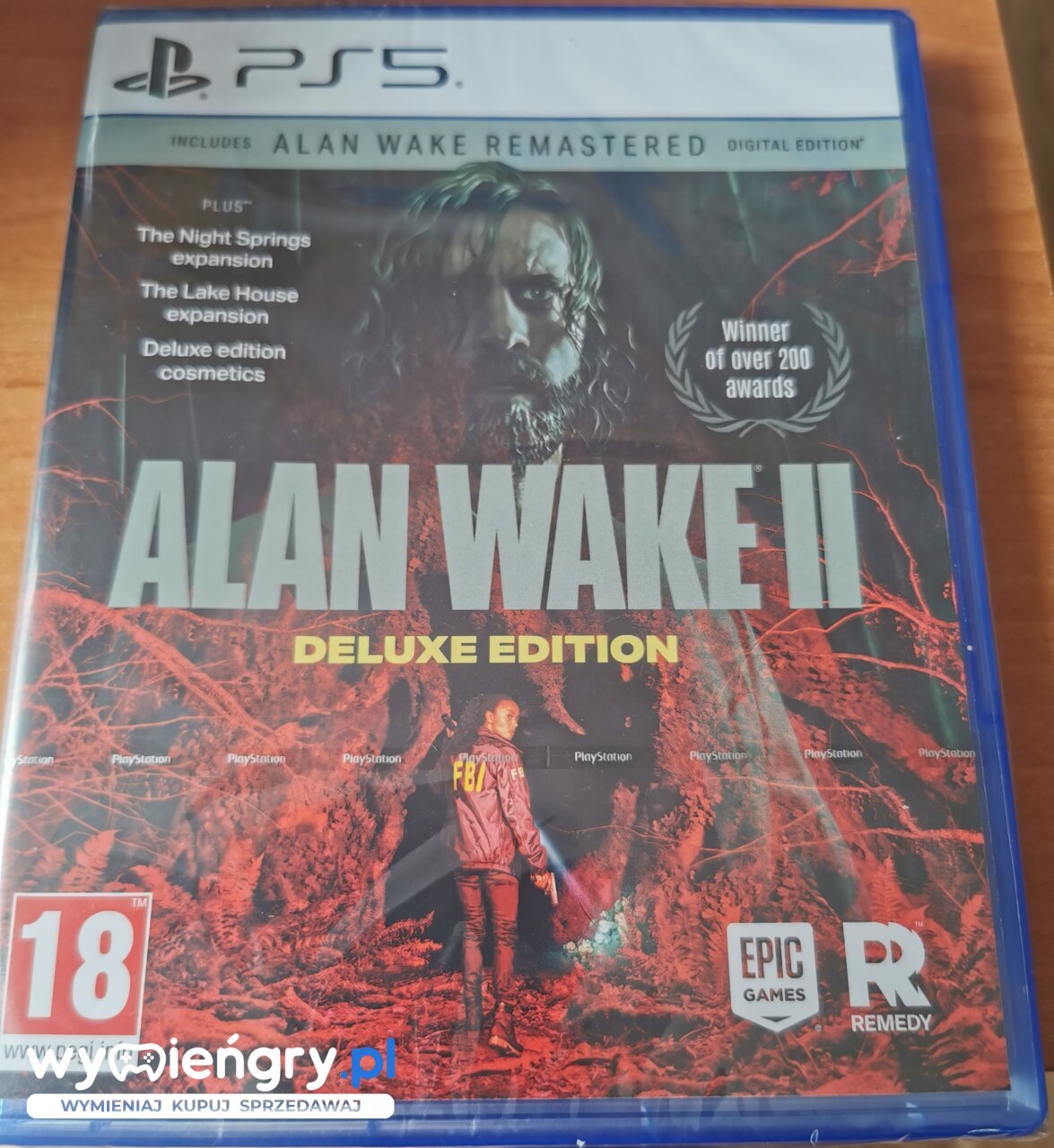 Alan Wake 2 to survival horror będący bezpośrednią kontynuacją gry z 2010 roku. Produkcja ponownie pozwala nam przenieść się do miasteczka Bright Falls i wraz z dwójką grywalnych postaci (tytułowym bohaterem i agentką FBI Sagą Anderson) stanąć do walki z mrocznymi siłami. Produkcja zabiera nas na północno-zachodnie wybrzeże Stanów Zjednoczonych, do miasteczka Bright Falls w stanie Waszyngton – tym pozornie idyllicznym miejscem wstrząsa fala zbrodni na tle rytualnym. Na miejsce wysłana zostaje Saga Anderson, profilerka FBI, która jest ekspertką od spraw trudnych do rozwiązania. Alan Wake 2 Deluxe Edition zawiera następujące elementy: Gra Alan Wake 2 w wersji fizycznej, DLC „Night Springs” i „Lake House”, Kosmetyczne DLC oraz Gra Alan Wake Remastered (Wydanie cyfrowe).
