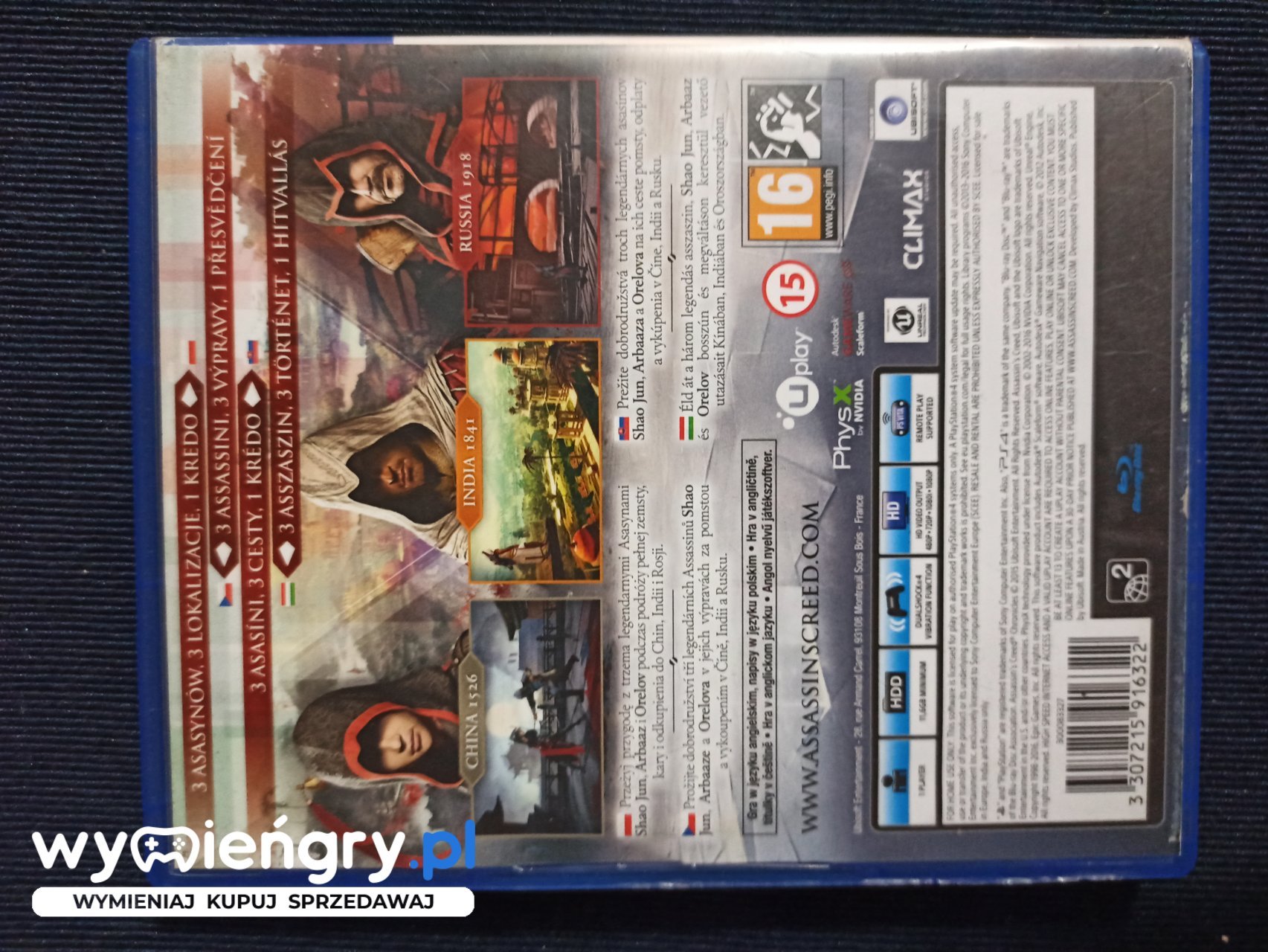 Kompilacja trzech spin-offów serii Assassin’s Creed, zrealizowanych w formie platformówek 2.5D. Zestaw obejmuje Assassin's Creed Chronicles: China, Assassin's Creed Chronicles: India oraz Assassin's Creed Chronicles: Russia. Akcja poszczególnych gier wchodzących w skład Assassin's Creed Chronicles: Trilogy toczy się w odmiennych realiach historycznych.