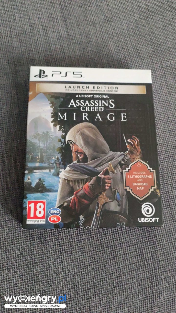 Poznaj historię Basima, sprytnego złodziejaszka doznającego koszmarnych wizji i poszukującego odpowiedzi oraz sprawiedliwości na gwarnych ulicach Bagdadu z dziewiątego wieku. Tajemnicza pradawna organizacja znana jako Ukryci pomoże mu stać się zabójcą doskonałym i odmienić swój los w sposób, jakiego nie byłby sobie nawet w stanie wyobrazić. Zawartość edycji launch: Assassin's Creed Mirage, Mapa Bagdadu, Zestaw trzech litografii.