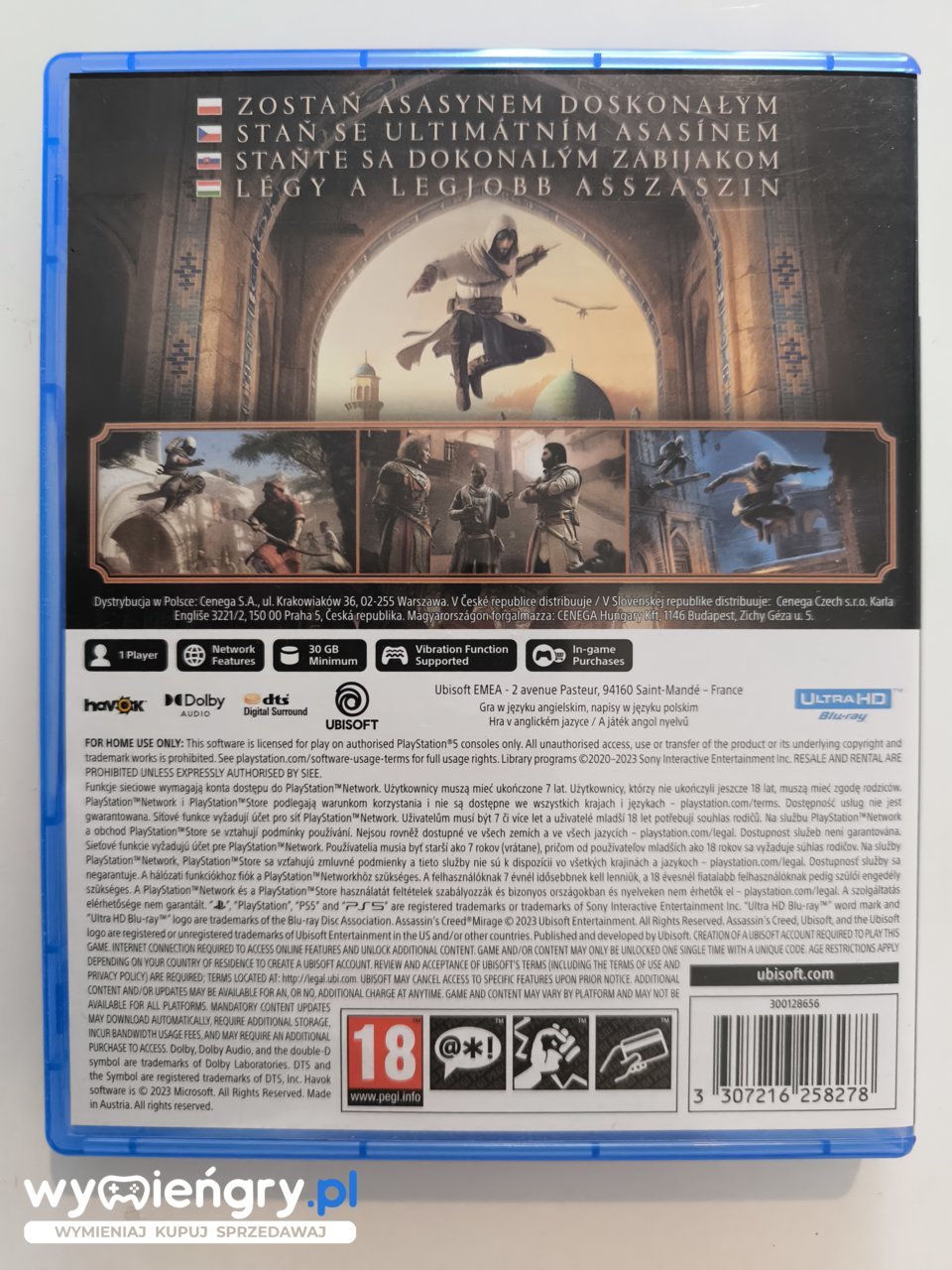 Poboczna odsłona serii, kładąca duży nacisk na skradanie się. Assassin’s Creed: Mirage (wcześniej znana jako Rift) to gra znacznie mniejsza niż Origins, Odyssey czy Valhalla, wracająca niejako do korzeni cyklu Ubisoftu. Assassin’s Creed: Mirage jest tytułem bardziej nastawionym na skradanie się niż na bezpośrednią walkę. Częściej niż tradycyjnych broni używamy w nim asasyńskiego ukrytego ostrza. Nie brakuje również rozbudowanej mechaniki parkouru – którą wykorzystujemy podczas eksploracji otoczenia – a także bogatego tła fabularnego, inspirowanego historycznymi realiami. Ponadto, tradycyjnie dla serii, spotkamy wiele realnych postaci z danego okresu, w tym m.in. liderów politycznych.