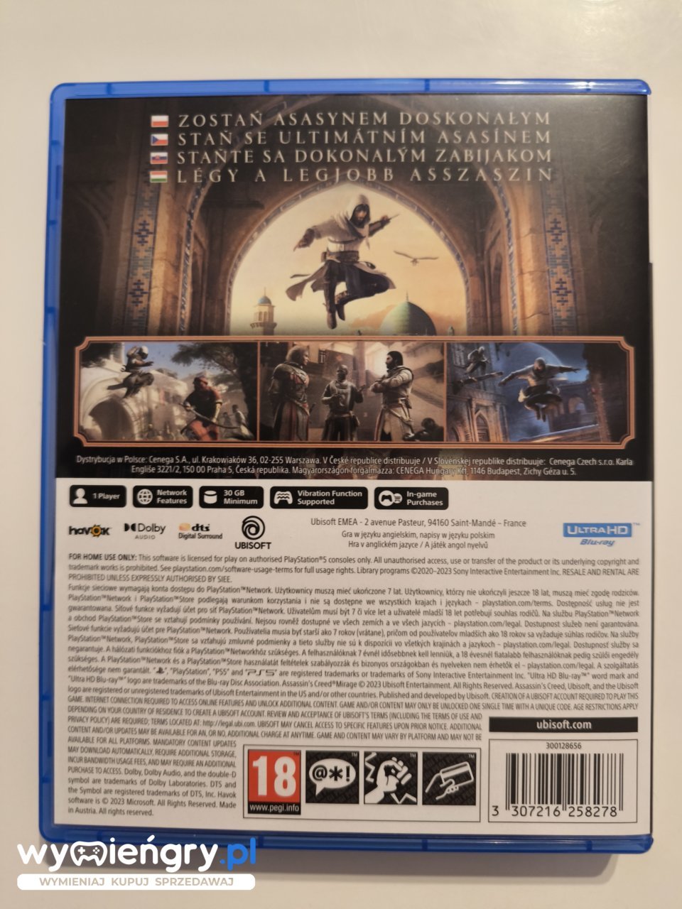 Poboczna odsłona serii, kładąca duży nacisk na skradanie się. Assassin’s Creed: Mirage (wcześniej znana jako Rift) to gra znacznie mniejsza niż Origins, Odyssey czy Valhalla, wracająca niejako do korzeni cyklu Ubisoftu. Assassin’s Creed: Mirage jest tytułem bardziej nastawionym na skradanie się niż na bezpośrednią walkę. Częściej niż tradycyjnych broni używamy w nim asasyńskiego ukrytego ostrza. Nie brakuje również rozbudowanej mechaniki parkouru – którą wykorzystujemy podczas eksploracji otoczenia – a także bogatego tła fabularnego, inspirowanego historycznymi realiami. Ponadto, tradycyjnie dla serii, spotkamy wiele realnych postaci z danego okresu, w tym m.in. liderów politycznych.