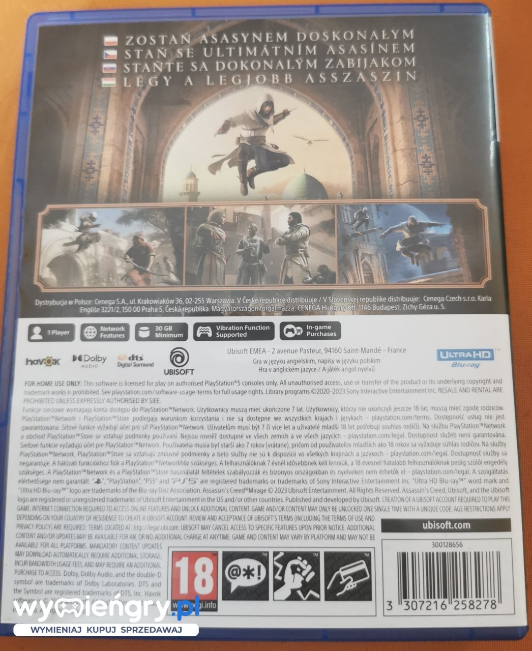 Poboczna odsłona serii, kładąca duży nacisk na skradanie się. Assassin’s Creed: Mirage (wcześniej znana jako Rift) to gra znacznie mniejsza niż Origins, Odyssey czy Valhalla, wracająca niejako do korzeni cyklu Ubisoftu. Assassin’s Creed: Mirage jest tytułem bardziej nastawionym na skradanie się niż na bezpośrednią walkę. Częściej niż tradycyjnych broni używamy w nim asasyńskiego ukrytego ostrza. Nie brakuje również rozbudowanej mechaniki parkouru – którą wykorzystujemy podczas eksploracji otoczenia – a także bogatego tła fabularnego, inspirowanego historycznymi realiami. Ponadto, tradycyjnie dla serii, spotkamy wiele realnych postaci z danego okresu, w tym m.in. liderów politycznych.