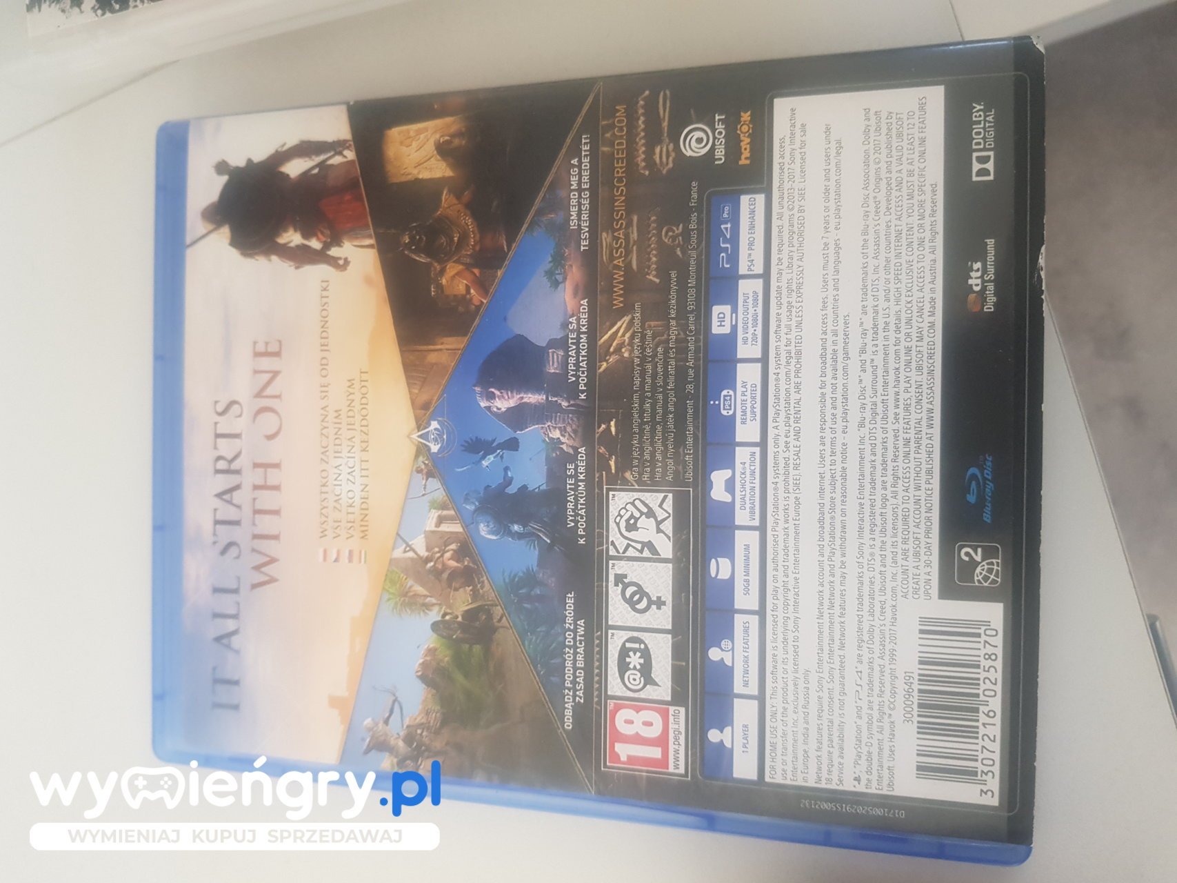 Kolejna odsłona bestsellerowego cyklu, stanowiąca niejako nowe otwarcie dla serii. Dzieło firmy Ubisoft przenosi graczy do starożytnego Egiptu, gdzie swoje początki miało bractwo tytułowych Asasynów. Starożytny Egipt, kraina bogów i przyziemnych intryg, staje się areną bezlitosnej walki o władzę. Odkryj mroczne sekrety i zapomniane podania, dzięki którym staniesz się najważniejszą postacią w dziele założenia Bractwa Asasynów.