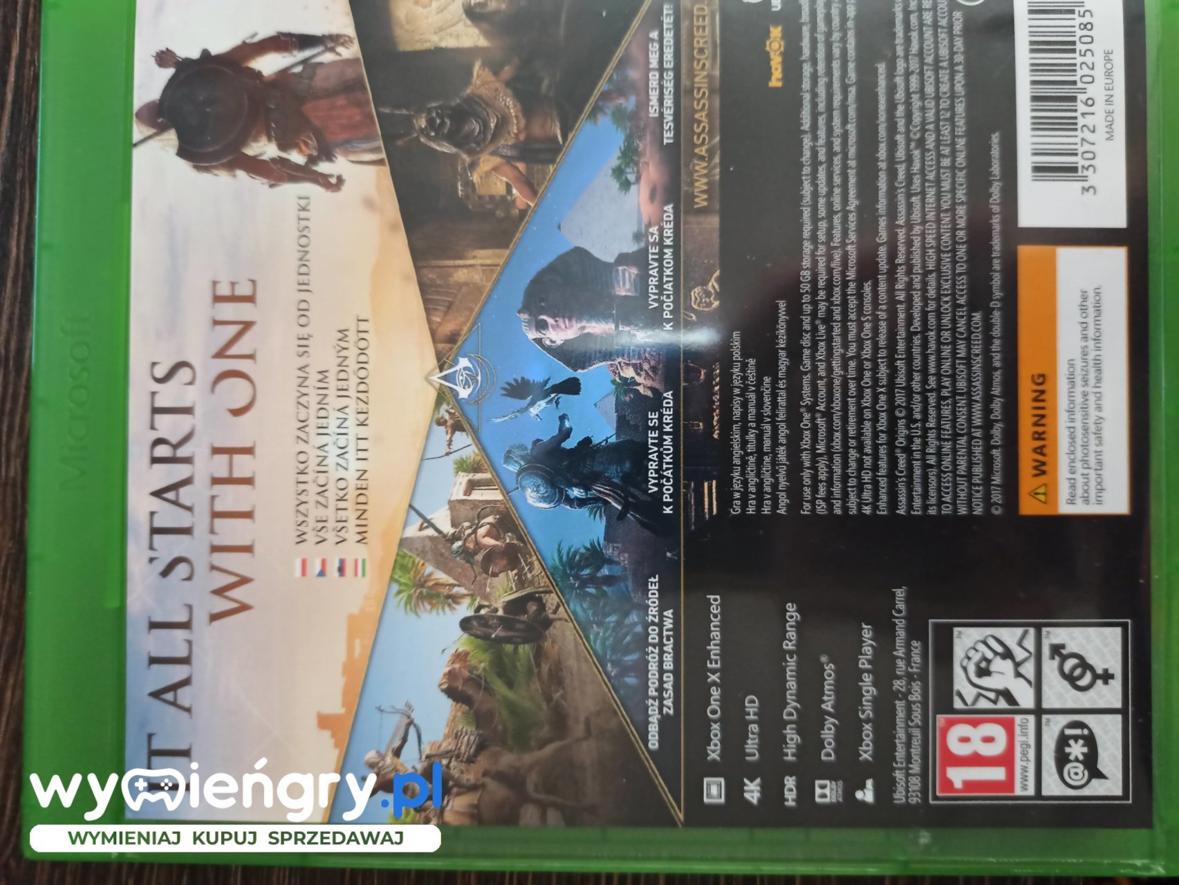 Kolejna odsłona bestsellerowego cyklu, stanowiąca niejako nowe otwarcie dla serii. Dzieło firmy Ubisoft przenosi graczy do starożytnego Egiptu, gdzie swoje początki miało bractwo tytułowych Asasynów. Starożytny Egipt, kraina bogów i przyziemnych intryg, staje się areną bezlitosnej walki o władzę. Odkryj mroczne sekrety i zapomniane podania, dzięki którym staniesz się najważniejszą postacią w dziele założenia Bractwa Asasynów.