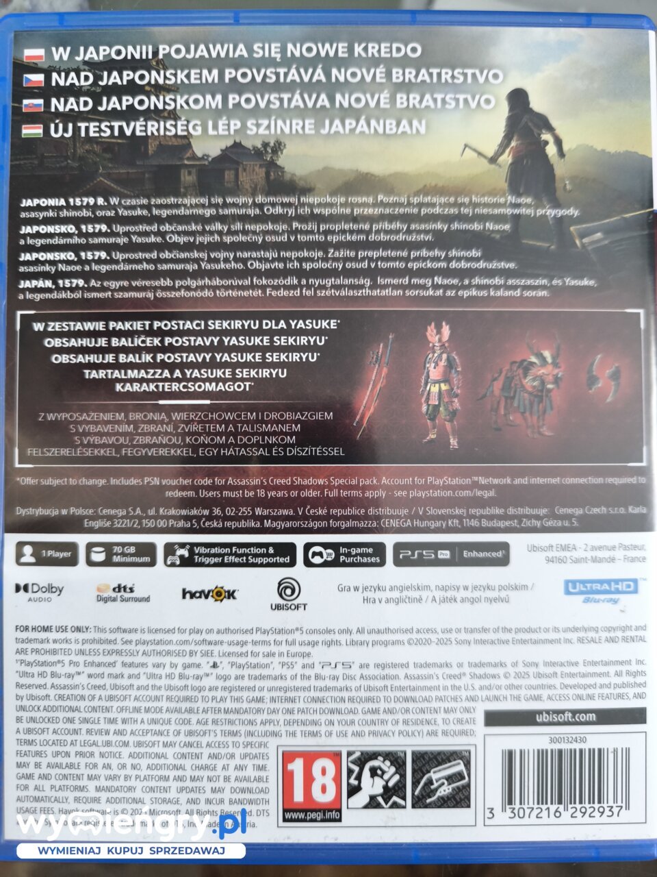 Przeżyj niesamowitą historyczną, pełną akcji przygodę. Rozgrywającą się w feudalnej Japonii! Wciel się w zabójczą shinobi oraz potężnego legendarnego samuraja i odkrywaj przepiękny otwarty świat w czasach chaosu. Przełączaj się płynnie między dwójką niespodziewanych sojuszników, poznaj ich wspólne przeznaczenie i zapoczątkuj w Japonii nową erę. Zawartość Edycji Specjalnej: Gra podstawowa, Pakiet postaci Sekiryu, w tym zestaw wyposażenia i broni dla Yasuke, bestia Sekiryu i ozdoba – Smoczy Ząb.