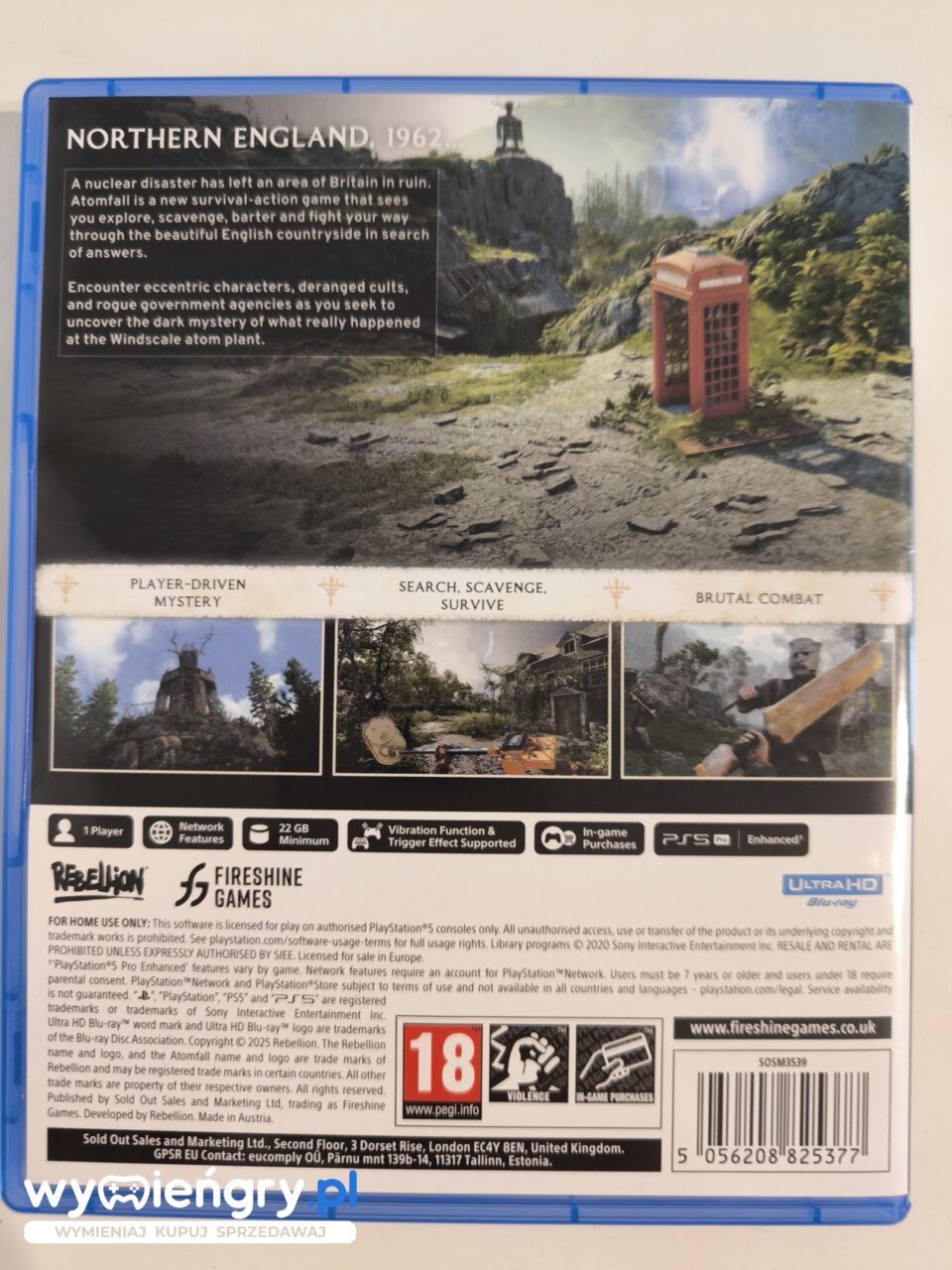 Gra akcji FPP z elementami RPG i survivalu od studia Rebellion (Sniper Elite), która nasuwa skojarzenia z seriami STALKER i Fallout. Atomfall przenosi nas do alternatywnego 1962 roku, do skażonej radioaktywnie strefy w Wielkiej Brytanii. Atomfall nawiązuje do pożaru w Windscale – katastrofy nuklearnej z 1957 roku, kiedy to w rdzeń jednego ze zbudowanych w pobliżu wioski Seascale (Wielka Brytania) reaktorów jądrowych uległ samozapłonowi, prowadząc do skażenia radioaktywnego całej okolicy. W zaprezentowanej przez twórców alternatywnej wersji tej historii skutki tego wydarzenia były znacznie poważniejsze, niż miało to miejsce w rzeczywistości.