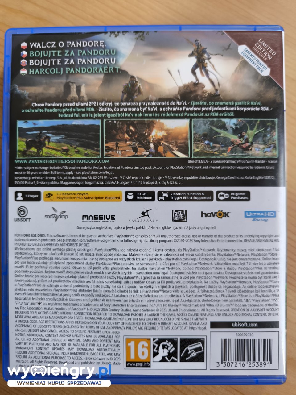 Odkryj świat pełen cudów i niebezpieczeństw. Odkryj epickie cuda Zachodnich Rubieży, niezbadanego dotychczas kontynentu Pandory. Podróżuj przez piękne, a jednocześnie nieprzewidywalne regiony otwartego świata, gdzie nawet chwilowa utrata czujności może okazać się śmiertelnym błędem. Avatar: Frontiers of Pandora Edycja Limitowana zawiera: Wydobądź z gry jeszcze więcej dzięki wersji Limited Edition i zyskaj pakiet wyposażenia łowcy Sarentu zawierający jedną wyjątkową broń i zestaw wyposażenia dla pojedynczej postaci.