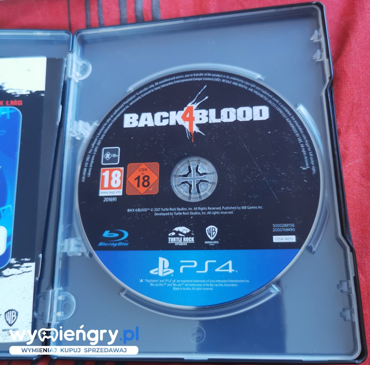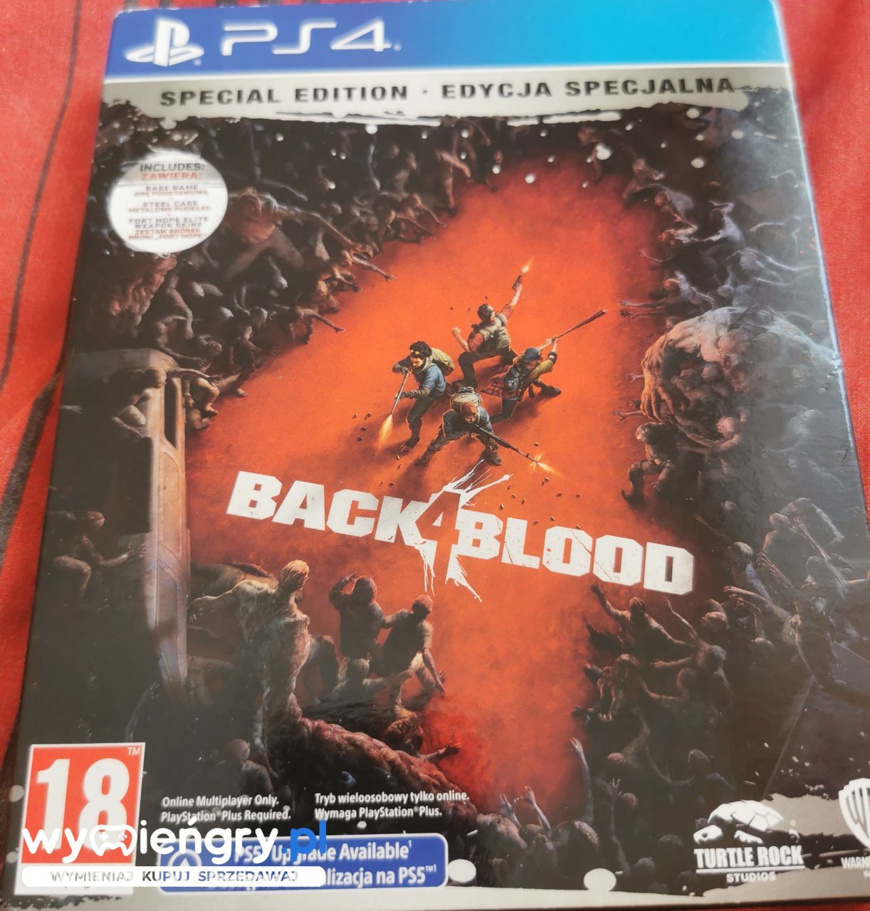 Kooperacyjna strzelanka FPP, w której gracze trafiają do świata opanowanego przez zombie. Back 4 Blood jest dziełem zespołu Turtle Rock Studios, który wcześniej stworzył między innymi takie pozycje jak Evolve czy bestsellerowe Left 4 Dead. Światem wstrząsa katastrofa. W wyniku epidemii wywołanej śmiercionośnym pasożytem wyginęła znaczna część ludzkiej populacji. Miasta zostały ponadto opanowane przez Ridden – żywicieli pasożyta, przeobrażającego ich w potworne, siejące zniszczenie kreatury. Grupka ocalałych, zwana „czyścicielami”, postanawia wspólnie stawić czoła hordzie wygłodniałych zombiaków i odzyskać chylącą się ku zagładzie cywilizację. Edycja Specjalna zawiera: Grę Back 4 Blood oraz Ekskluzywne metalowe opakowanie,