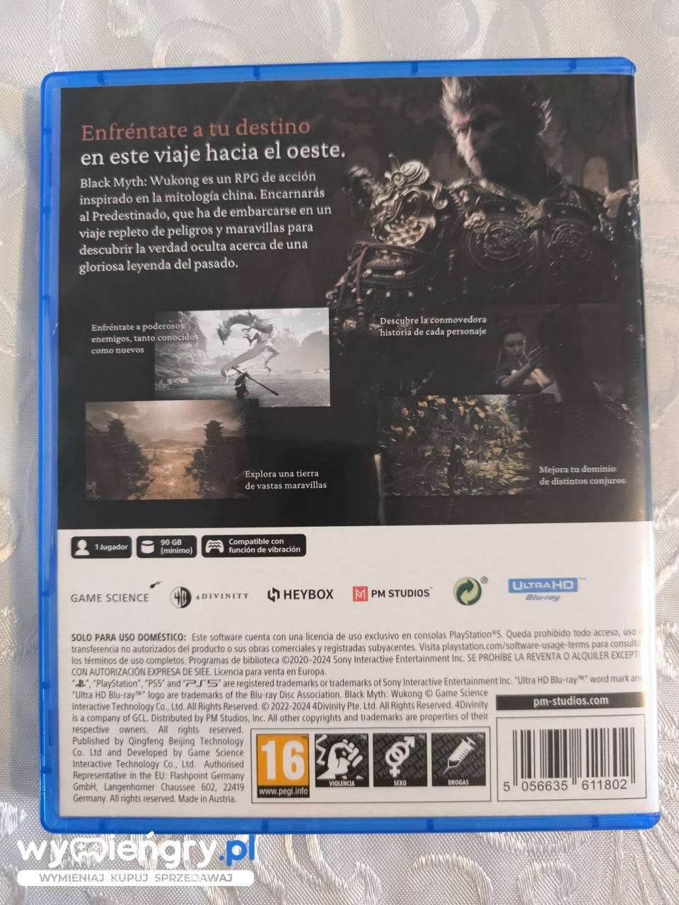 Trzecioosobowa gra RPG akcji z elementami soulslike autorstwa chińskiej firmy Game Science. Wcielając się w tytułowego Wybrańca, gracz wyrusza w trudną wędrówkę przez mroczny świat fantasy inspirowany mitologią Państwa Środka. Akcja Black Myth: Wukong została osadzona w mrocznym świecie fantasy inspirowanym mitologią Państwa Środka. Przedstawiona w grze historia bazuje zaś na klasycznej XVI-wiecznej powieści Wędrówka na Zachód, którą napisał Wu Czeng’en. Gracz wciela się w tytułowego Wybrańca – Małpiego Króla, który wyrusza w niebezpieczną podróż, by odkryć prawdę, kryjącą się za wspaniałą legendą. Edycja fizyczna będzie zawierała kod na Edycję Cyfrową Deluxe z następującymi treściami cyfrowymi.