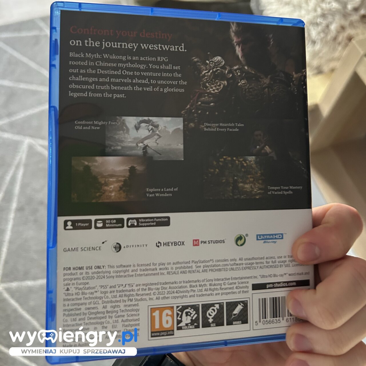 Trzecioosobowa gra RPG akcji z elementami soulslike autorstwa chińskiej firmy Game Science. Wcielając się w tytułowego Wybrańca, gracz wyrusza w trudną wędrówkę przez mroczny świat fantasy inspirowany mitologią Państwa Środka. Akcja Black Myth: Wukong została osadzona w mrocznym świecie fantasy inspirowanym mitologią Państwa Środka. Przedstawiona w grze historia bazuje zaś na klasycznej XVI-wiecznej powieści Wędrówka na Zachód, którą napisał Wu Czeng’en. Gracz wciela się w tytułowego Wybrańca – Małpiego Króla, który wyrusza w niebezpieczną podróż, by odkryć prawdę, kryjącą się za wspaniałą legendą. Edycja fizyczna będzie zawierała kod na Edycję Cyfrową Deluxe z następującymi treściami cyfrowymi.