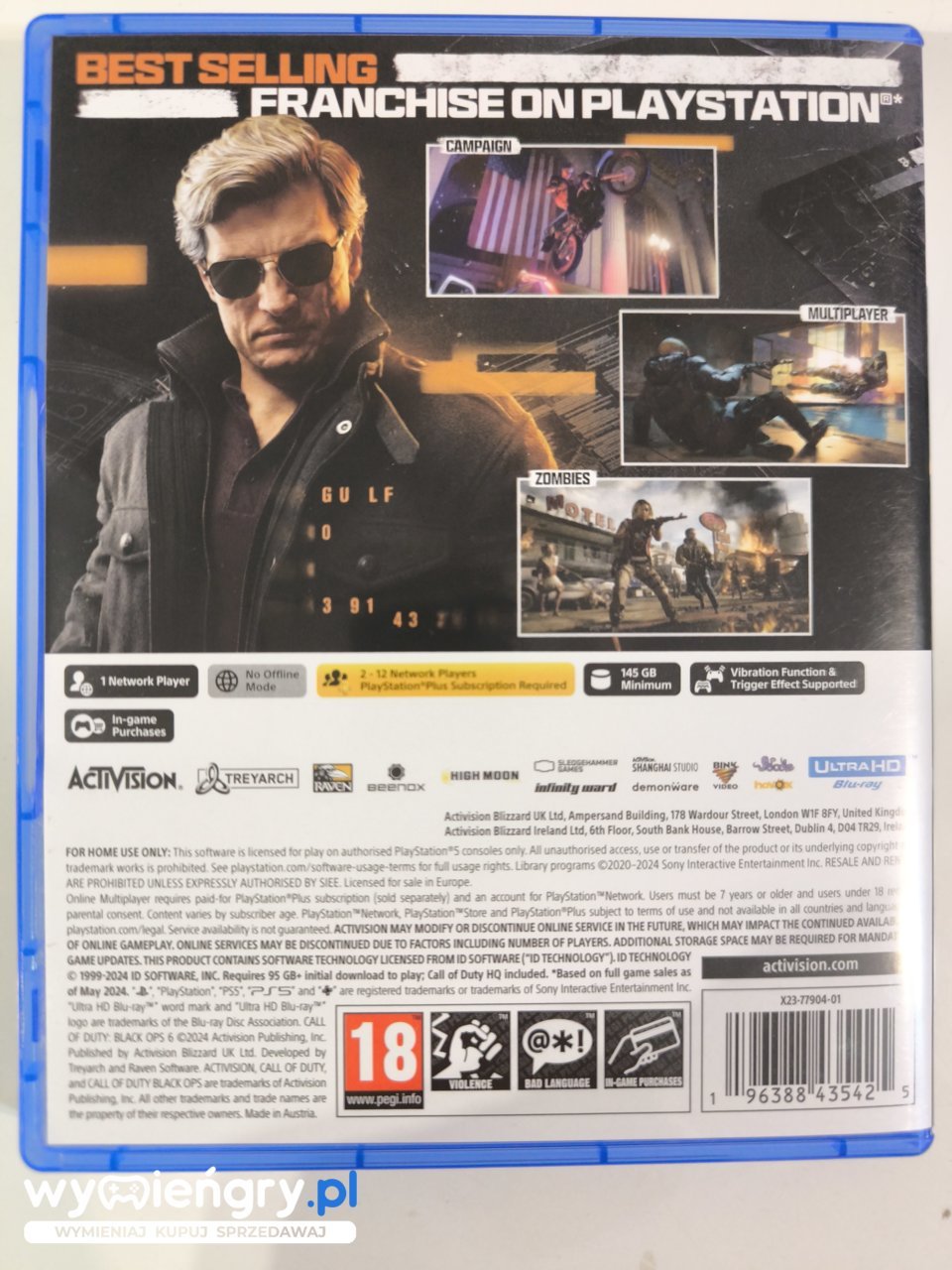 21. główna część serii Call of Duty, a zarazem 6. odsłona podcyklu Black Ops. W Call of Duty: Black Ops 6 otrzymujemy osadzoną w latach 90. XX wieku kampanię fabularną, a także tryby multiplayer i Zombies. Na liście nowości prym wiedzie system poruszania się Omnimovement. Call of Duty: Black Ops 6 to opracowany przez Treyarch i Raven thriller szpiegowski, osadzony na początku lat 90., czyli w okresie gwałtownych zmian w światowej polityce, takich jak zakończenie zimnej wojny, gdy Stany Zjednoczone pozostały jedynym supermocarstwem. Black Ops charakteryzuje się niezwykłą, zaskakującą i łamiącą wszelkie konwencje narracją, widowiskową kampanią dla jednego gracza, najwyższej klasy trybem wieloosobowym oraz powracającym w wielkim stylu trybem zombie z rundami.