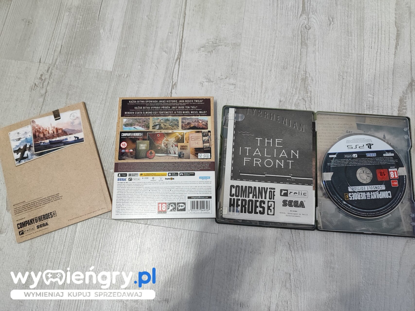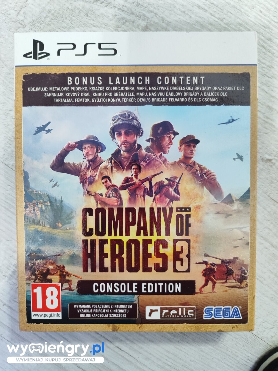 Company of Heroes 3 to trzecia odsłona popualrnej serii taktycznych strategii czasu rzeczywistego, które rozgrywają się podczas II wojny światowej. Producentem gry jest studio Relic Entertainment, mające na koncie wiele tytułów z gatunku. Company of Heroes 3 przenosi graczy na śródziemnomorskie fronty II wojny światowej. Podczas dynamicznej i nielinearnej kampanii dla pojedynczego gracza, która łączy ze sobą turową rozgrywkę na dużej mapie regionu oraz wykonywanie dziesiątek klasycznych misji w czasie rzeczywistym, walczymy we Włoszech oraz w Północnej Afryce. Edycja Premierowa ze steelbookiem zawiera: Steelbook z grą Company of Heroes 3, Kolekcjonerską książkę, Dwustronną mapę, Naszywkę, Zestaw DLC.