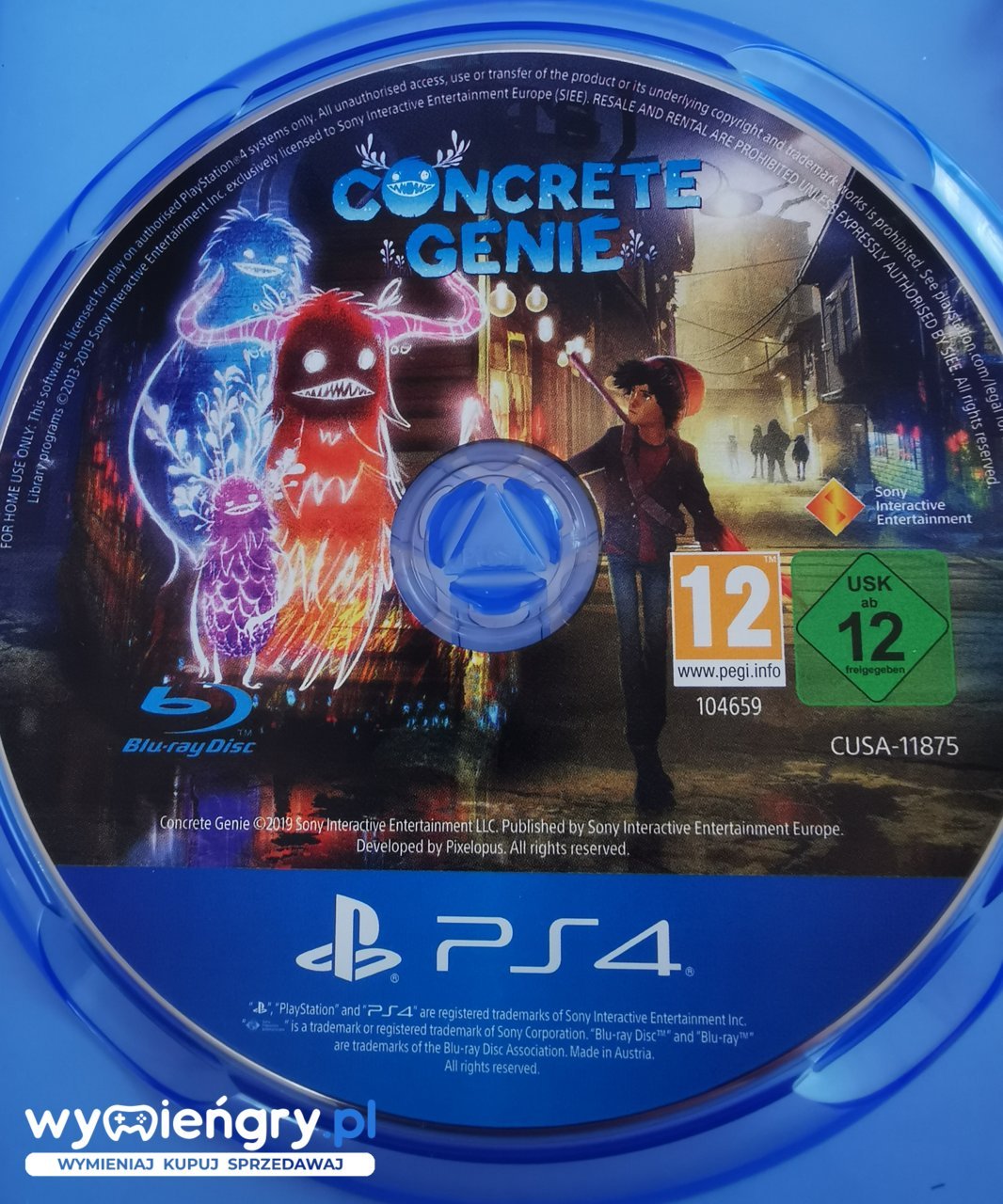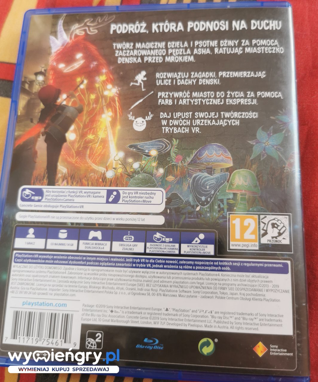 Concrete Genie jest przygodową grą akcji stworzoną przez należące do Sony studio PixelOpus. W grze wcielamy się w Asha – chłopca mieszkającego w ponurym nadmorskim miasteczku, który odkrywa, że posiada moc ożywiania malunków wykonanych na ścianach magicznym pędzlem. Ash to jedyna nadzieja małego rybackiego miasteczka Denska, które jest zanieczyszczone i opuszczone, jednak dzięki niesamowitej umiejętności ożywiania sztuki Ash może je ocalić. Korzystając z funkcji czujnika ruchu kontrolera bezprzewodowego Dualshock 4, stworzysz oszałamiające krajobrazy i ożywisz wyjątkowe stworzenia w tej kolorowej i widowiskowej przygodowej grze akcji, wzbogacając życie nie tylko Asha, lecz wszystkich mieszkańców miasta.