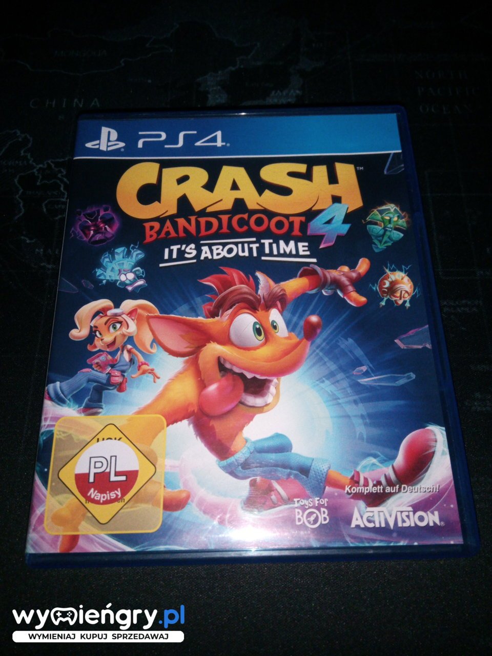 Platformówka 3D studia Toys for Bob stanowiąca kontynuację Crash Bandicoot 3: Warped z 2007 roku. Podczas zabawy w Crash Bandicoot 4: It’s About Time gracze eksplorują kolorowe światy, przeskakują przeszkody, unikają pułapek i radzą sobie z wrogami. Gra nie oferuje pełnej swobody eksploracji świata. Poziomy wyglądają różnie, ale wszystkie mają postać tunelu prowadzącego nas w większości liniową drogą od startu do mety. Zabawę urozmaicają starcia z bossami oraz okazjonalne sekcje wzorowane na dwuwymiarowych platformówkach. Podczas rozgrywki gracz może pokierować Crashem, jego młodszą siostrą Coco oraz kilkoma innymi postaciami, w tym Neo Cortexem. Po raz pierwszy w historii serii grywalny jest także Dingodile, który wcześniej pełnił rolę bossa.