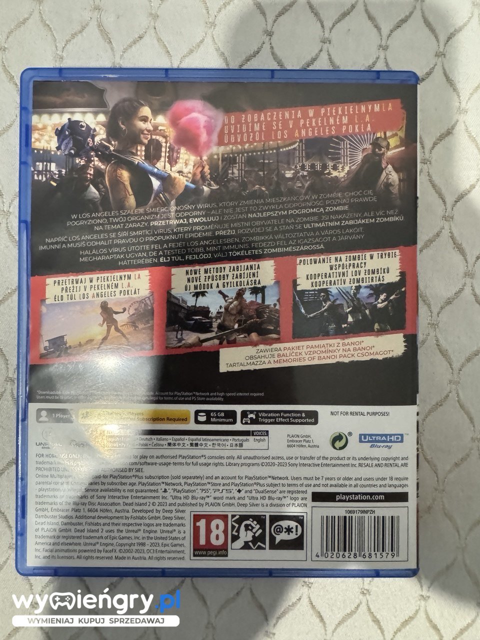 Druga część serii gier akcji FPP, w której walczymy o przetrwanie podczas apokalipsy zombie. Dead Island 2 zabiera nas do Los Angeles, gdzie trafiamy jako jeden ze szczęśliwców odpornych na działanie śmiertelnie niebezpiecznego wirusa. Akcja gry Dead Island 2 toczy się po wydarzeniach przedstawionych w pierwszej odsłonie cyklu. Wirus zmieniający ludzi w zombie dotarł do Kalifornii. Wojsko, które miało zapanować nad sytuacją, nie zdołało wykonać zadania, toteż ostatecznie wycofało się z Los Angeles. Metropolia została objęta kwarantanną, a jej mieszkańców pozostawiono na pastwę losu. Okazuje się jednak, że w „mieście aniołów” przebywają osoby, które po ugryzieniu nie zmieniają się w żywe trupy – zamiast tego choroba zapewnia im różnorodne zdolności, o których zdrowi ludzie mogą jedynie pomarzyć.