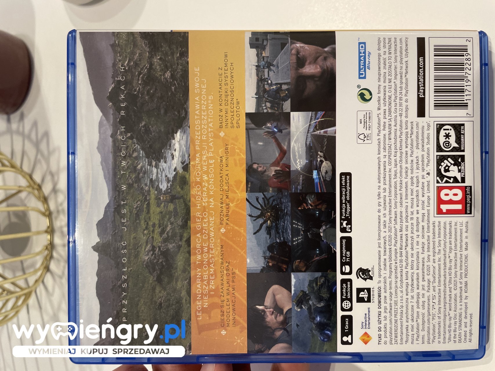 Wyrusz w niezwykłą podróż przez postapokaliptyczny świat pełen tajemnic i wyzwań w Death Stranding. Wciel się w Sama Portera Bridgesa, kuriera przyszłości, który musi odbudować rozbite społeczeństwo, niosąc nadzieję i łącząc izolowane osady. Odkryj piękno i niebezpieczeństwa nieznanej krainy, pokonując przeszkody i stawiając czoła tajemniczym stworom. Rozwijaj umiejętności, twórz połączenia i odkrywaj historię, która zmieni twoje spojrzenie na świat. Death Stranding to niepowtarzalne doświadczenie, przenoszące cię w świat pełen emocji, samotności i nadziei.