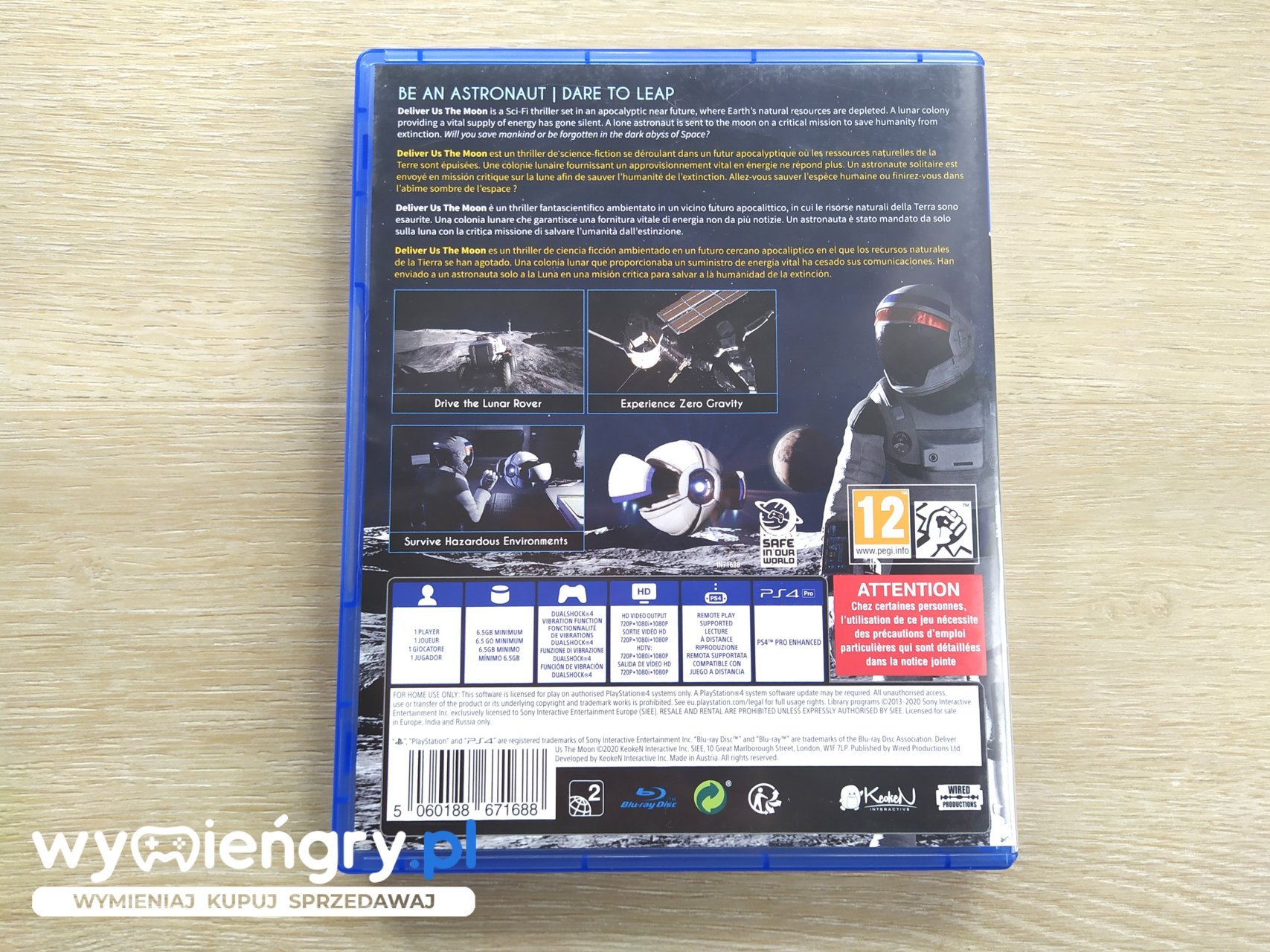 Deliver Us The Moon to thriller sci-fi osadzony w niedalekiej, postapokaliptycznej przyszłości, w której zasoby naturalne Ziemi ulegają wyczerpaniu. Utracono kontakt z dostarczającą niezbędnej energii kolonią na Księżycu. Samotny astronauta udaje się na satelitę z misją ocalenia ludzkości przed zagładą. Uratujesz ludzkość, czy zginiesz w mrocznej otchłani kosmosu? Gra jest pierwszym dużym projektem założonego w 2013 roku niezależnego, holenderskiego studia KeokeN, a jej produkcję zfinansowano w znacznym stopniu dzięki środkom uzyskanym za pośrednictwem serwisu Kickstarter. Deliver Us the Moon: Deluxe Edition zawiera: wysoko ocenianą ścieżkę dźwiękową w wersji cyfrowej, grę Deliver Us The Moon oraz 100-stronicowy cyfrowy artbook.