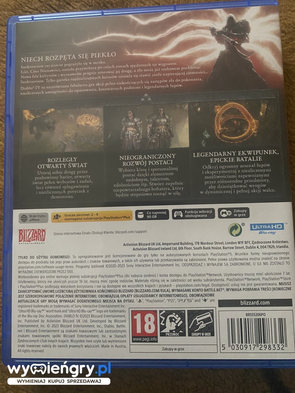 Diablo 4 to RPG typu hack-n-slash od studia Blizzard Entertainment. Diablo IV zabiera nas w mroczną podróż do bezlitosnego świata Sanktuarium. Odkryj wojnę pomiędzy niebiańskimi i piekielnymi siłami oraz staw czoła przerażającym potworom. Wciel się w jednego z bohaterów, zdobądź potężne zdolności i walcz o przetrwanie w otwartym świecie pełnym niebezpieczeństw i niesamowitych tajemnic.