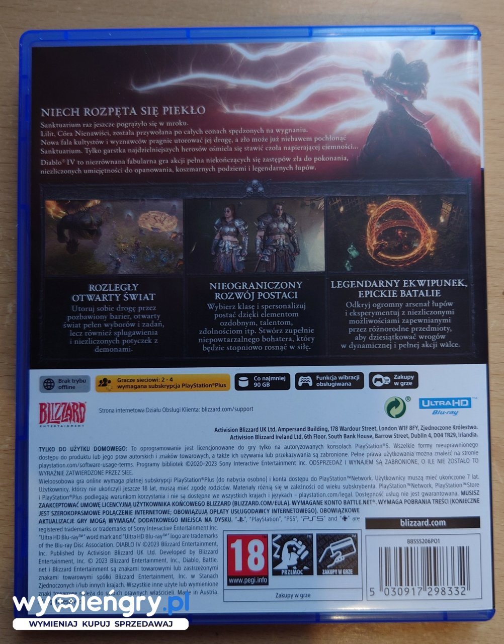 Diablo 4 to RPG typu hack-n-slash od studia Blizzard Entertainment. Diablo IV zabiera nas w mroczną podróż do bezlitosnego świata Sanktuarium. Odkryj wojnę pomiędzy niebiańskimi i piekielnymi siłami oraz staw czoła przerażającym potworom. Wciel się w jednego z bohaterów, zdobądź potężne zdolności i walcz o przetrwanie w otwartym świecie pełnym niebezpieczeństw i niesamowitych tajemnic.