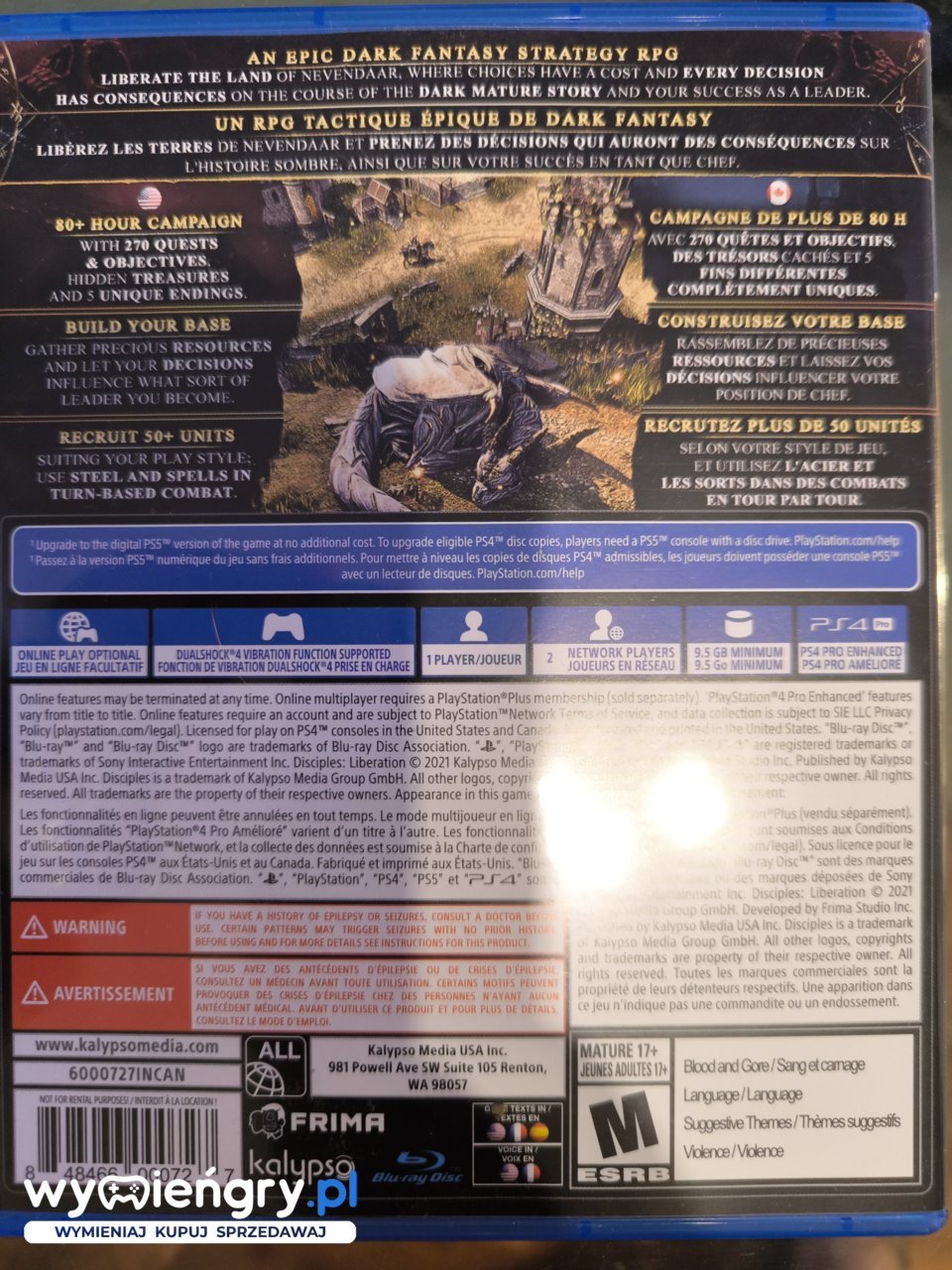 Disciples: Liberation to czwarta odsłona kultowego cyklu produkcji z pogranicza RPG-ów i strategii turowych, zapoczątkowanego w 1999 roku. Tytuł został opracowany przez zespół Frima Studio (autorów takich gier, jak Carcassonne: Tiles & Tactics oraz Chariot), natomiast jego wydaniem zajęła się firma Kalypso Media. Disciples: Liberation zabiera nas w podróż do mrocznej, fantastycznej krainy Nevendaar. W trakcie rozgrywki wcielamy się w postać, której zadaniem jest jej tytułowe wyzwolenie. By tego dokonać, bohater (lub bohaterka) musi odkryć jej mroczne sekrety, nawiązywać sojusze z trzęsącymi nią frakcjami oraz podejmować decyzje, które ukształtują zarówno jego dalsze losy, jak i przyszłość całej krainy. Opowiedziana w grze historia może zakończyć się na pięć sposobów, a to, który z finałów zobaczymy, jest determinowane przez nasze działania i wybory. Disciples: Liberation - Deluxe Edition zawiera dodatkowo: dwa unikalne zestawy zbroi, dwie nowe bronie, Odłamek Emocji dla Avyanny, tapety, kompendium wiedzy, ścieżkę dźwiękową i dwa Pakiety, których można użyć raz na każdą nową sesję gry.