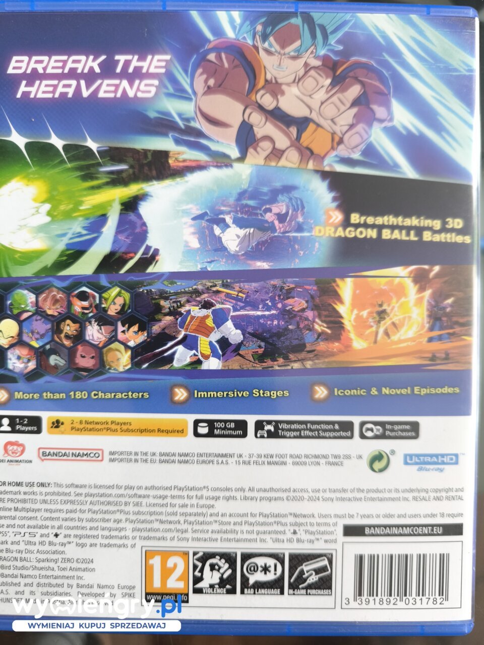 Dragon Ball: Sparking! ZERO to nowa odsłona serii trójwymiarowych bijatyk Budokai Tenkaichi z bohaterami Dragon Balla od Bandai Namco. Powstała u twórcy oryginalnego cyklu i kontynuuje dziedzictwo poprzedników, pozwalając stanąć do pojedynków z udziałem Goku i spółki. Dragon Ball: Sparking! ZERO wynosi na zupełnie nowe poziomy legendarną już rozgrywkę rodem z serii Budokai Tenkaichi. Poznaj i opanuj grę szerokim wachlarzem grywalnych postaci, z których każda ma własne, popisowe umiejętności, transformacje i techniki. Zdobądź dla siebie niszczycielską siłę najsilniejszych wojowników, jacy kiedykolwiek pojawili się w serii DRAGON BALL!