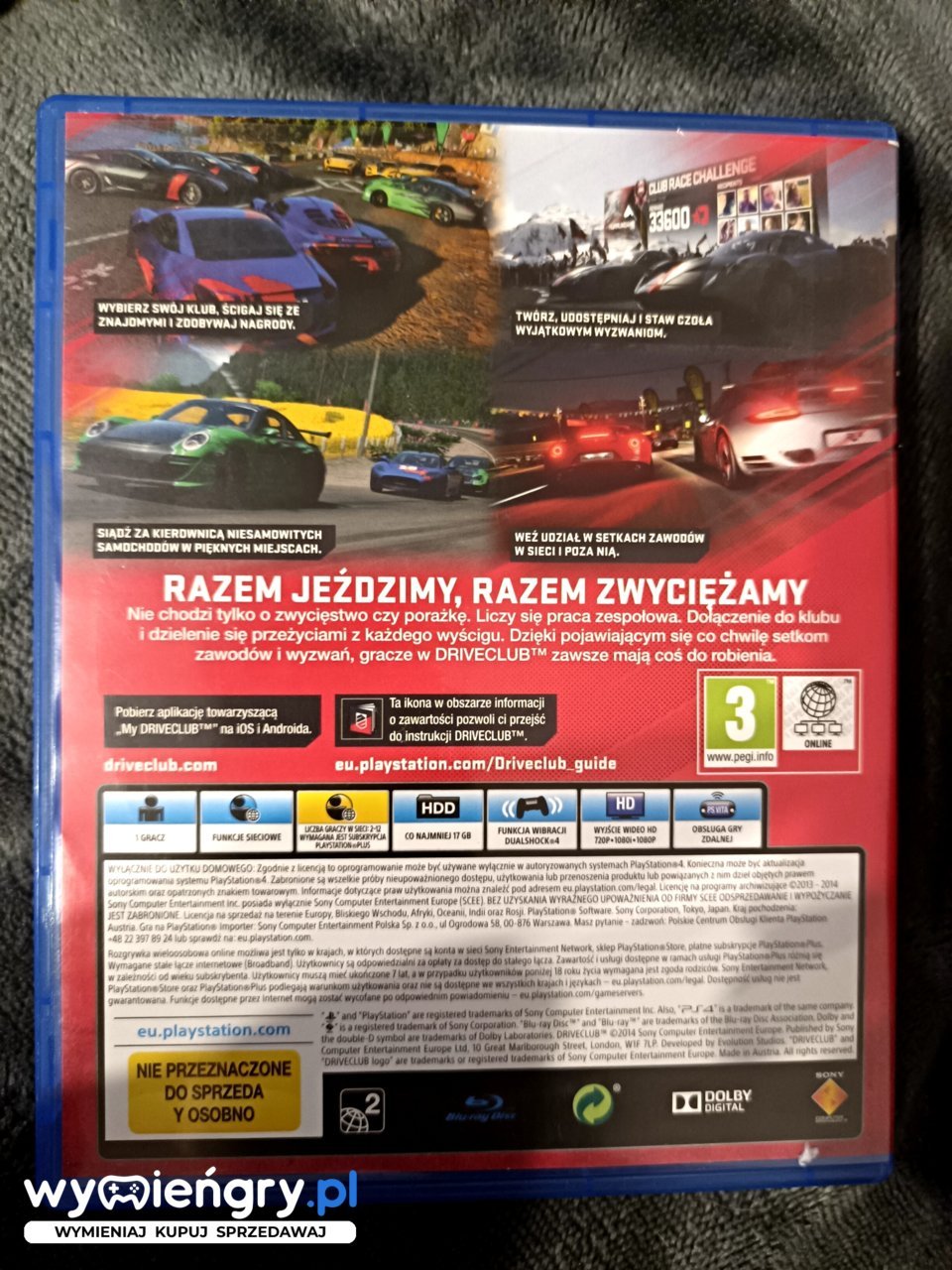 Zręcznościowe wyścigi samochodowe, stworzone z myślą o zabawie w trybie wieloosobowym. Dewelopingu DriveClub podjęło się studio Evolution, znane przede wszystkim z serii World Rally Championship oraz MotorStorm.