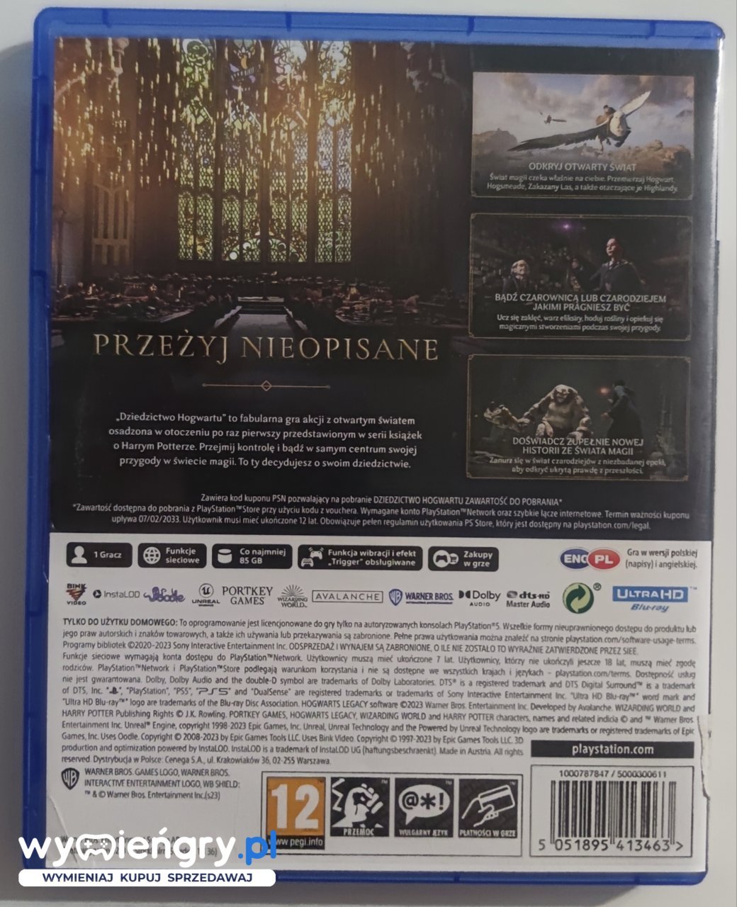 Przejdź przez mury magicznej szkoły, odkrywaj tajemnice czarodziejów i stwórz własną legendę w Hogwarts Legacy. Wciel się w ucznia szkoły magii i odkryj ogromny świat pełen niezwykłych stworzeń, potworów i zaklęć. Znajdź swoje powołanie, rozwijaj umiejętności czarowania i poznawaj magiczne sekrety. Podążaj za ścieżką dobra lub zgubienia, a twoje wybory będą miały wpływ na losy całej społeczności czarodziejów. Przygotuj się na niezapomnianą podróż, gdzie magia czeka na ciebie na każdym kroku.