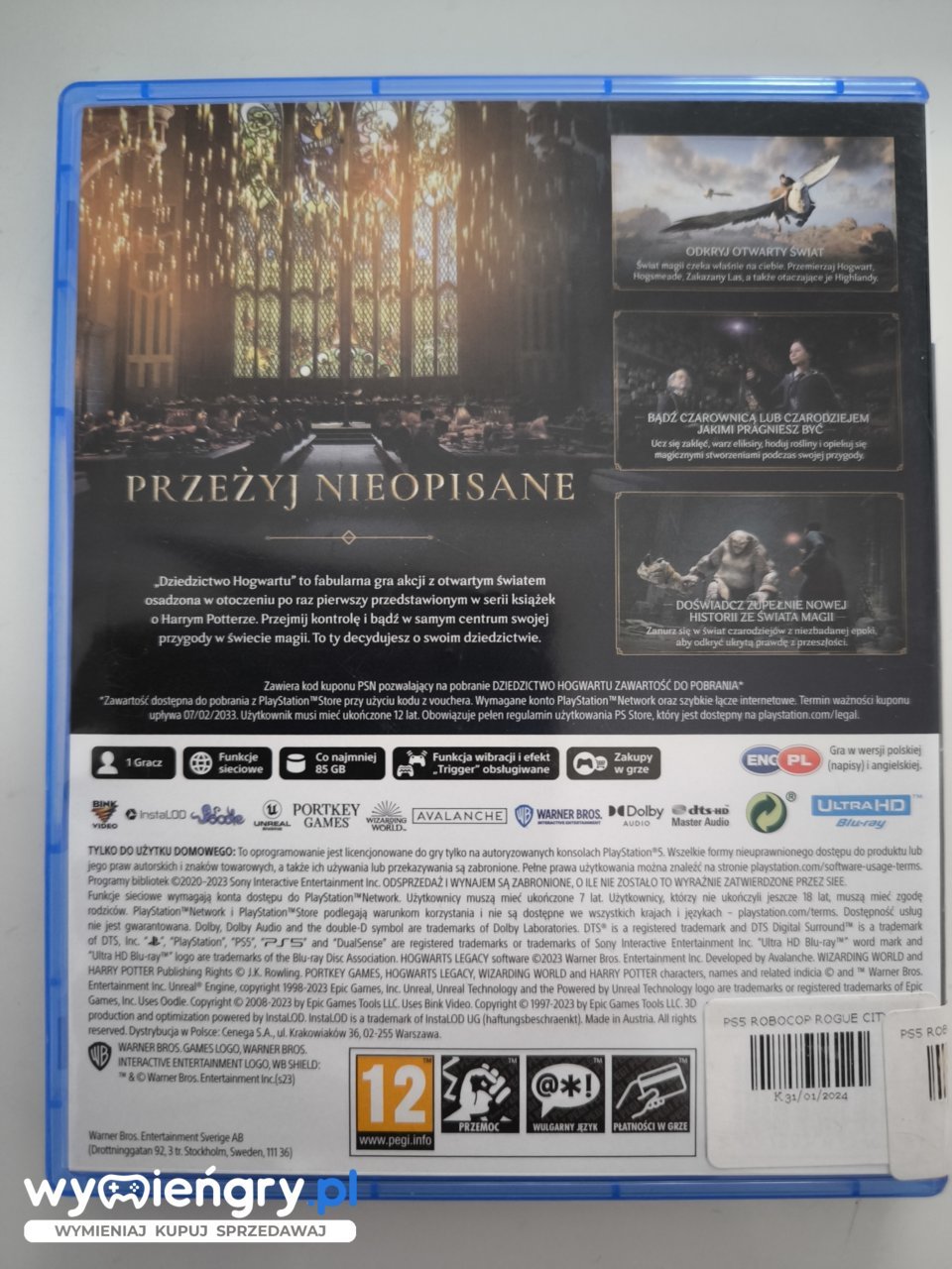 Przejdź przez mury magicznej szkoły, odkrywaj tajemnice czarodziejów i stwórz własną legendę w Hogwarts Legacy. Wciel się w ucznia szkoły magii i odkryj ogromny świat pełen niezwykłych stworzeń, potworów i zaklęć. Znajdź swoje powołanie, rozwijaj umiejętności czarowania i poznawaj magiczne sekrety. Podążaj za ścieżką dobra lub zgubienia, a twoje wybory będą miały wpływ na losy całej społeczności czarodziejów. Przygotuj się na niezapomnianą podróż, gdzie magia czeka na ciebie na każdym kroku.