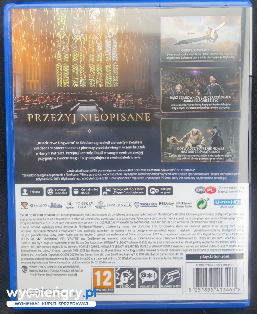 Przejdź przez mury magicznej szkoły, odkrywaj tajemnice czarodziejów i stwórz własną legendę w Hogwarts Legacy. Wciel się w ucznia szkoły magii i odkryj ogromny świat pełen niezwykłych stworzeń, potworów i zaklęć. Znajdź swoje powołanie, rozwijaj umiejętności czarowania i poznawaj magiczne sekrety. Podążaj za ścieżką dobra lub zgubienia, a twoje wybory będą miały wpływ na losy całej społeczności czarodziejów. Przygotuj się na niezapomnianą podróż, gdzie magia czeka na ciebie na każdym kroku.