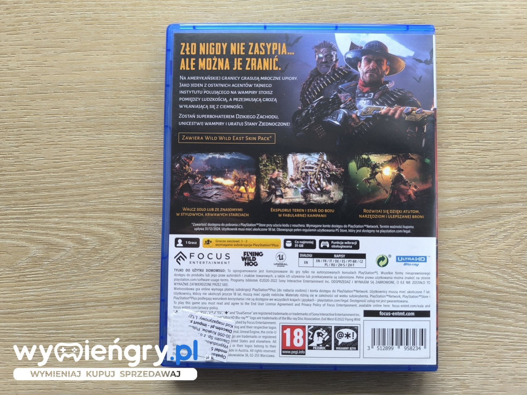 Evil West to gra akcji z elementami RPG opracowana przez polskie studio Flying Wild Hog. Wydaniem zajęło się natomiast Focus Home Interactive. Evil West osadzone zostało w alternatywnej wersji Dzikiego Zachodu, w której klasyczne westernowe motywy mieszają się ze zjawiskami nadprzyrodzonymi i nowoczesną technologią. Całą Amerykę opanowała plaga wampirów. W czasie przygody gracz wciela się w jednego z członków organizacji zajmującej się zwalczeniem potworów. Pudełkowa wersja gry Evil West zawiera dodatek Wild Wild East Pack! Rozpraw się z nieumarłymi w fantastycznym stylu dzięki nowemu strojowi i pięciu skórkom do broni.