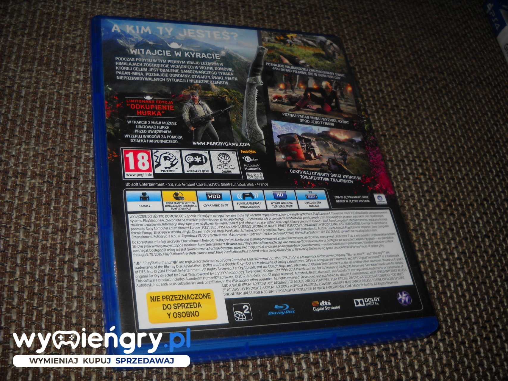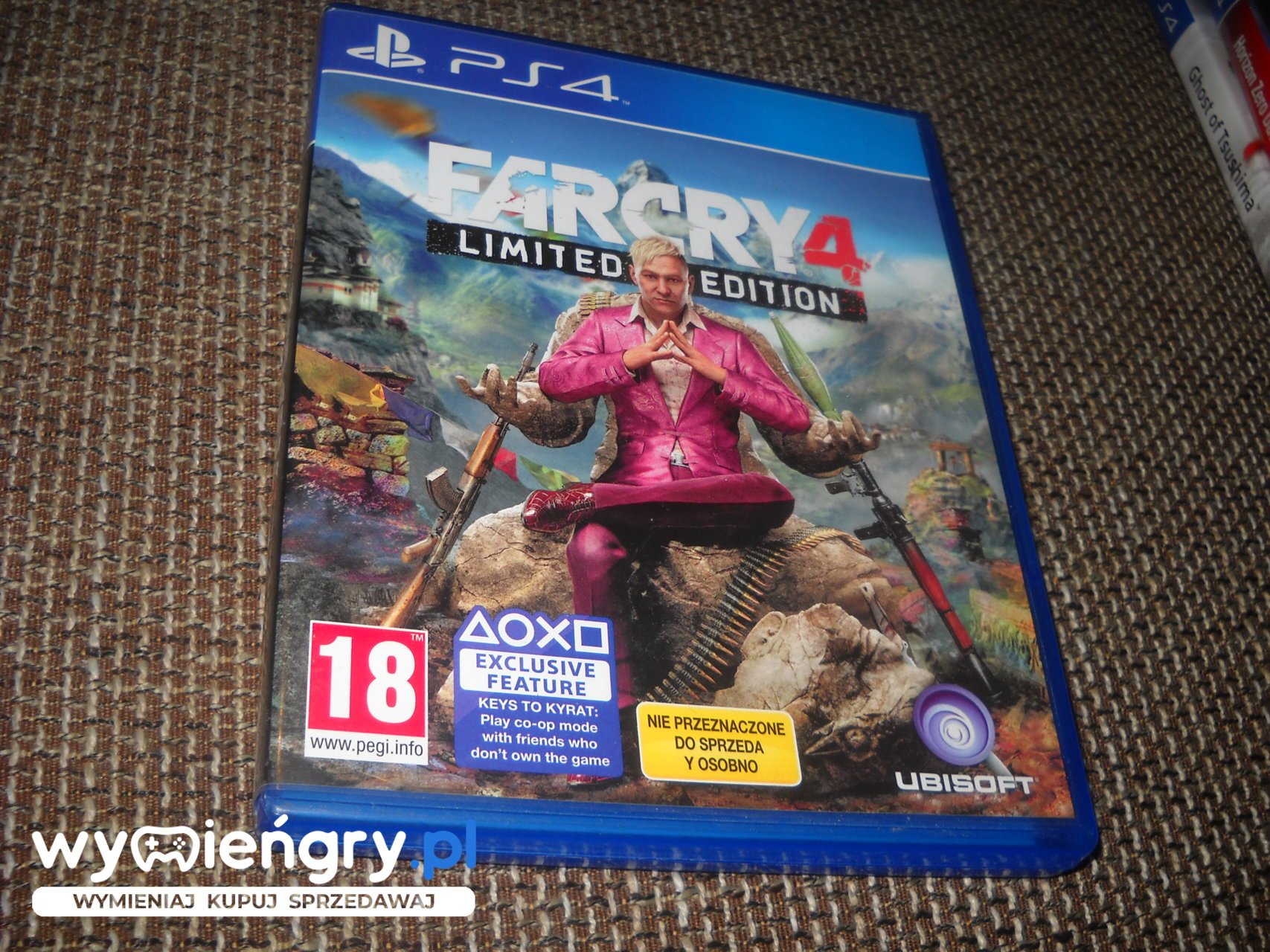 Czwarta odsłona niezwykle popularnego cyklu sandboksowych gier akcji z widokiem z perspektywy pierwszej osoby (FPP). Zgodnie z polityką koncernu Ubisoft, deweloping tytułu powierzony został kilku wewnętrznym studiom deweloperskim na czele z Ubisoft Montreal i Ubisoft Shanghai. Far Cry 4: Limited Edition zawiera pełną wersję gry Far Cry 4 oraz specjalne misje “Odkupienie Hurka" czyli dodatkowe 60 minut rozgrywki, 3 misje i jedna, wyjątkowa broń. Trzy misje, w których występuje Wasz dobry znajomy Hurk (po 20 minut każda). Misja 1: Walcz z wrogami w jaskiniach górskich aby zdobyć zagubiony artefakt. Misja 2: Walcz u boku Hurka z falami wrogów używających niezwykłego środka transportu. Misja 3: Rzuć się w pościg za nieprzyjacielskim konwojem i uratuj Hurka od pewnej śmierci. Unikatowa broń: Działko harpunnicze “the Impaler”! Nadziej wroga za pomocą zmodyfikowanego działka harpunniczego z pakietem skórek!