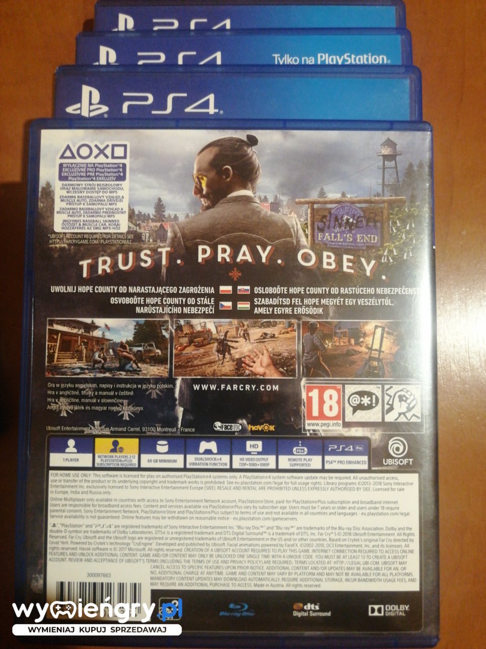 Piąta pełnoprawna odsłona rozwijanego przez firmę Ubisoft cyklu pierwszoosobowych gier akcji z otwartym światem. Witaj w Hope County w stanie Montana – krainie ludzi wolnych i dzielnych, ale i kolebce fanatycznego kultu Projekt Bram Edenu. Stań do walki z przywódcą kultu, Josephem Seedem, oraz jego rodzeństwem – Heroldami, by wzniecić ruch oporu i oswobodzić lokalną społeczność.