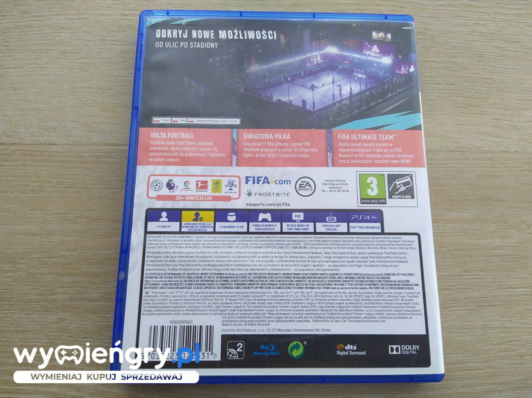 FIFA 20 na konsole PlayStation 4 to kolejna odsłona serii gier piłkarskich od studia EA Sports. W FIFA 20 kierujemy wiernie odwzorowanymi prawdziwymi drużynami oraz zawodnikami, grając przeciwko sztucznej inteligencji lub innym graczom. Tym razem oparta na silniku najnowszej generacji Frosbite EA SPORTS FIFA 20 zapewnia mistrzowskie wrażenia na boisku i poza nim. Powracają najpopularniejsze tryby, w tym : FIFA Ultimate Team, dodatkowe ligi w trybie kariery i wiele innych. Czy jesteś gotowy na nową lepszą rozgrywkę? Chcesz znowu zmierzyć swoje siły z innymi graczami? Tym razem EA, aby dodać jeszcze więcej realizmu do rozgrywki wprowadza elementy transmisji telewizyjnych. Dostępne będą kultowe trofea z Ligi Mistrzów UEFA, Liga Europy i Superpuchar. Główną nowością jest tryb VOLTA Football, gdzie gracze mogą stworzyć własną postać, wyrazić swój indywidualny styl i cieszyć się realistycznym futbolem ulicznym. Ten zupełnie nowy system rozgrywki osadzony głęboko w prawdziwej piłce pozwala poczuć rytm ulicy dzięki uproszczonym sztuczkom i nowym animacjom popisów.