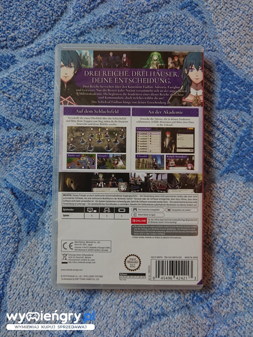 Mam na wydanie grę Fire Emblem Three Houses w bardzo dobrym stanie (dbam o swoje rzeczy). Gra została zakupiona w cieszącym się dobrą opinią profesjonalnym sklepie internetowym, wszystko działa jak należy, gra jest oryginalna, w języku angielskim, a pudełko jak to dość często u nas bywa, w języku niemieckim.