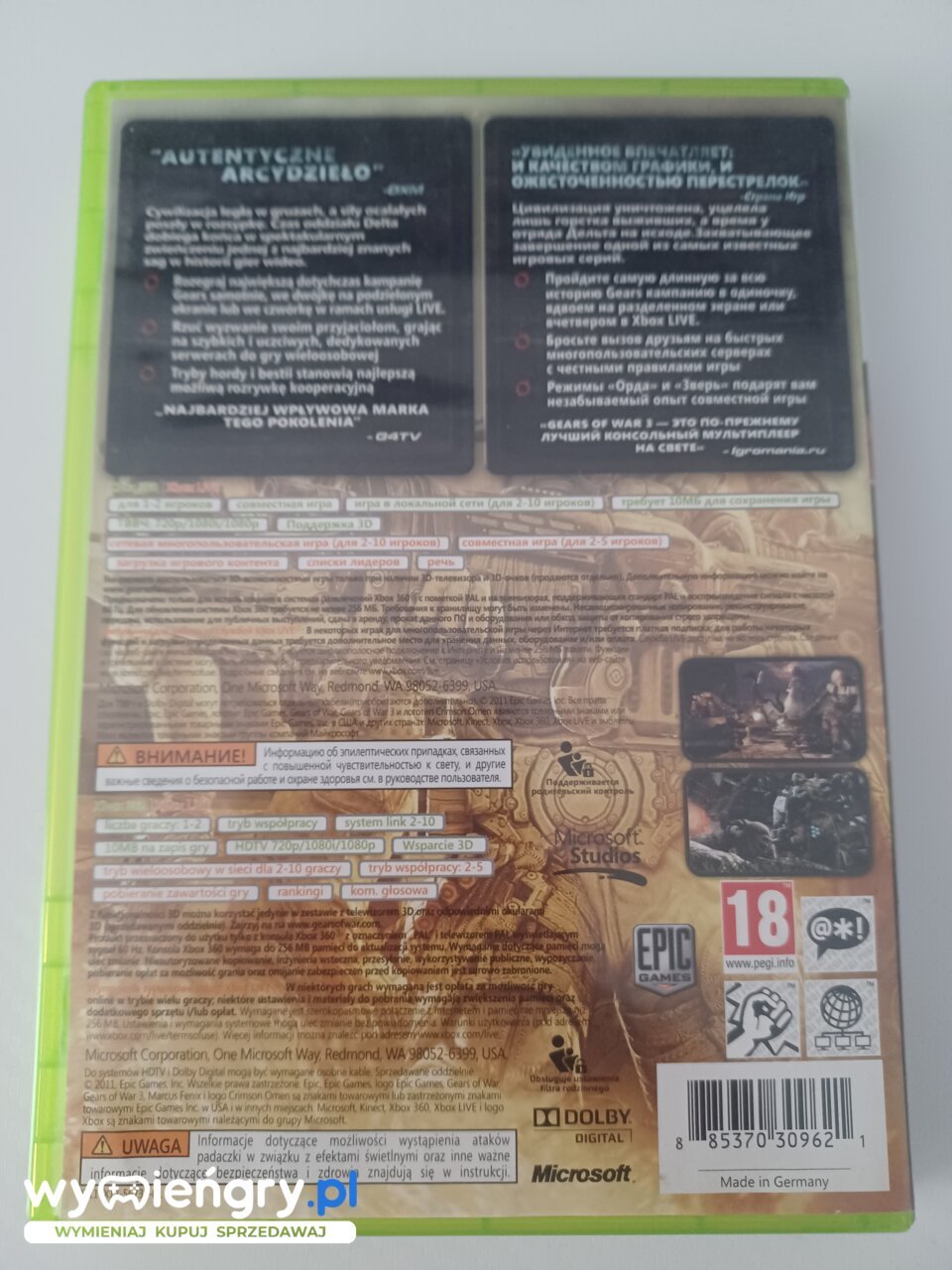 Trzecia odsłona serii futurystycznych strzelanin studia Epic Games, stanowiących prawdziwą chlubę konsoli Xbox 360. Po zniszczeniu ostatniego bastionu ludzi – miasta Jacinto, koalicja COG w dalszym ciągu prowadzi nierówną walkę z przeważającymi siłami Szarańczy.