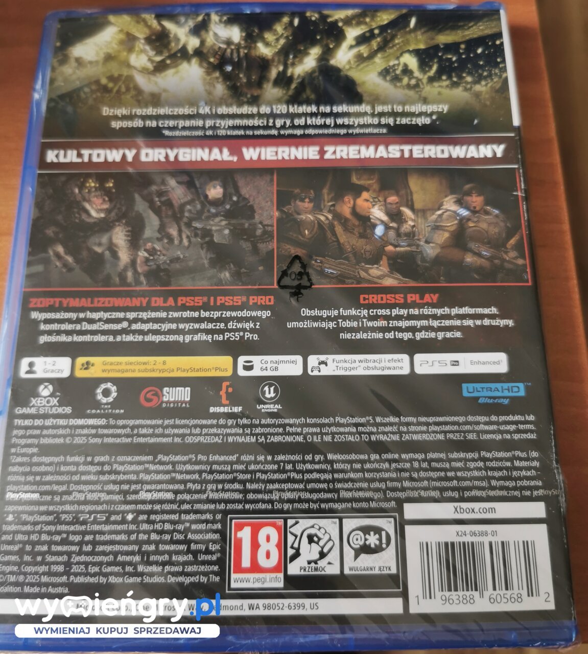 Gears of War: Reloaded to nowa odsłona jednej z najsłynniejszych franczyz w historii gier komputerowych, zoptymalizowana pod kątem konsol PlayStation®. Możesz cieszyć się funkcjami rozgrywki charakterystycznymi dla platformy PlayStation®5 — w tym obsługą kontrolerów bezprzewodowych DualSense® z efektami dotykowymi, obsługą głośników kontrolera i adaptacyjnymi spustami. Kultowy oryginał teraz wygląda i działa lepiej niż kiedykolwiek — błyskawiczne czasy ładowania, grafika w rozdzielczości 4K, zremasterowane tekstury, oświetlenie, cienie i odbicia, gra obsługuje technologie HDR i Dolby Atmos, a także ma zmienną częstotliwość odświeżania i aż do 120 kl./s w trybie wieloosobowym.*