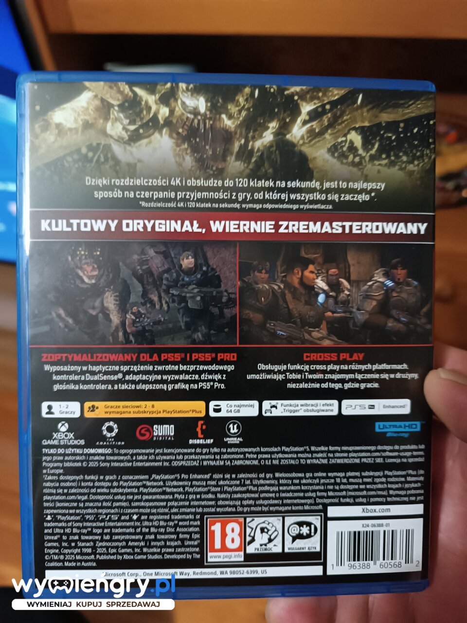 Gears of War: Reloaded to nowa odsłona jednej z najsłynniejszych franczyz w historii gier komputerowych, zoptymalizowana pod kątem konsol PlayStation®. Możesz cieszyć się funkcjami rozgrywki charakterystycznymi dla platformy PlayStation®5 — w tym obsługą kontrolerów bezprzewodowych DualSense® z efektami dotykowymi, obsługą głośników kontrolera i adaptacyjnymi spustami. Kultowy oryginał teraz wygląda i działa lepiej niż kiedykolwiek — błyskawiczne czasy ładowania, grafika w rozdzielczości 4K, zremasterowane tekstury, oświetlenie, cienie i odbicia, gra obsługuje technologie HDR i Dolby Atmos, a także ma zmienną częstotliwość odświeżania i aż do 120 kl./s w trybie wieloosobowym.*