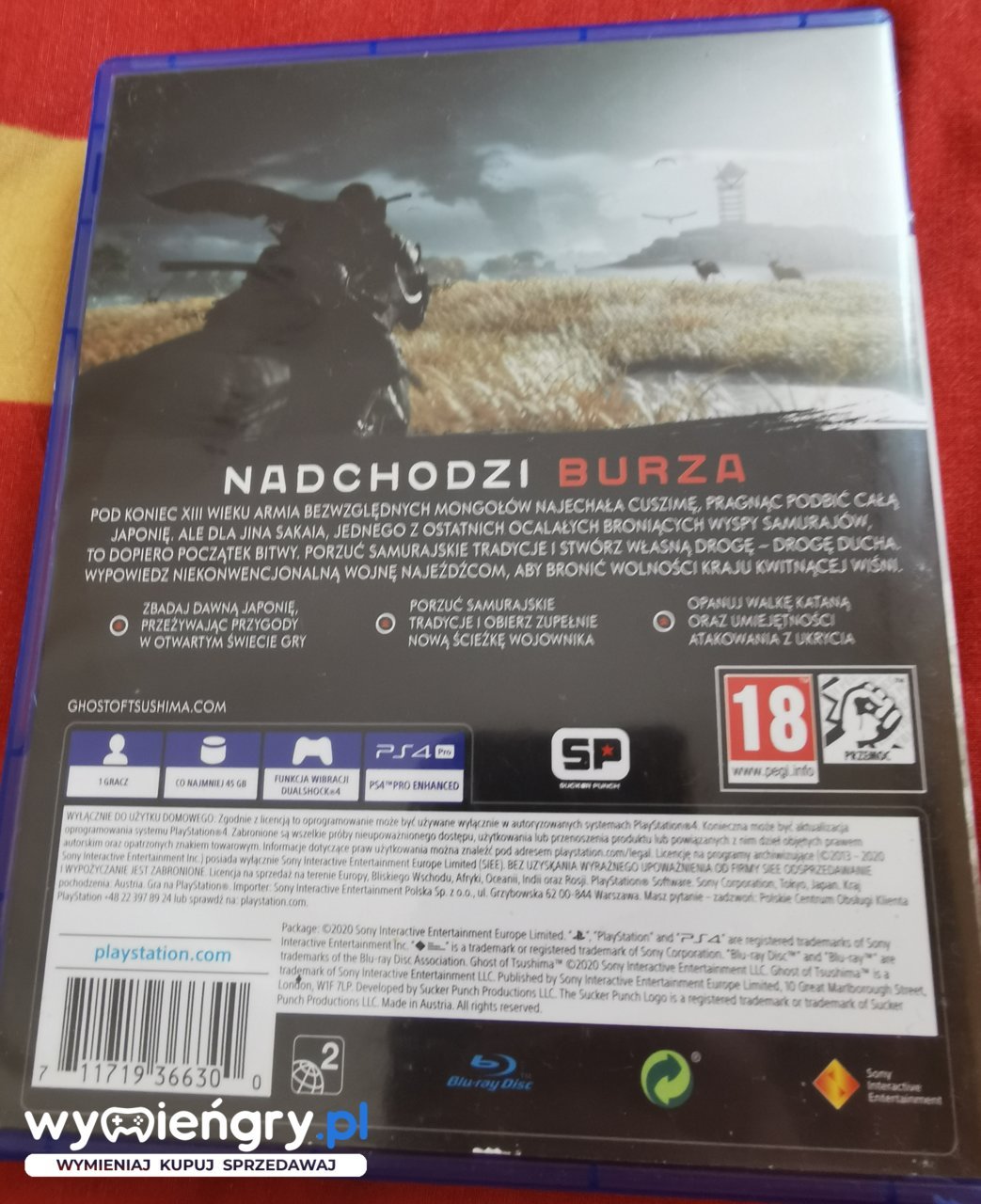 Przenieś się w czasie do feudalnej Japonii w grze Ghost of Tsushima i staw czoła najeźdźcom mongolskim. Wciel się w Jin Sakaia, samuraja, który staje się duchem śmiercionośnego mściciela. Wykorzystaj swoje umiejętności walki, kamuflażu i strategiczne podejście, by ocalić Tsushimę. Odkryj rozległy, piękny świat inspirowany japońską kulturą, eksploruj malownicze krajobrazy i poznaj tajemnice dawnej sztuki wojennej. Twoje wybory zdefiniują twoją ścieżkę w tym epickim starciu honoru i przeznaczenia.