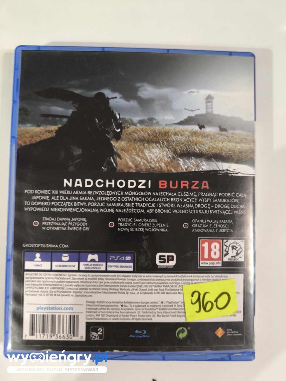 Przenieś się w czasie do feudalnej Japonii w grze Ghost of Tsushima i staw czoła najeźdźcom mongolskim. Wciel się w Jin Sakaia, samuraja, który staje się duchem śmiercionośnego mściciela. Wykorzystaj swoje umiejętności walki, kamuflażu i strategiczne podejście, by ocalić Tsushimę. Odkryj rozległy, piękny świat inspirowany japońską kulturą, eksploruj malownicze krajobrazy i poznaj tajemnice dawnej sztuki wojennej. Twoje wybory zdefiniują twoją ścieżkę w tym epickim starciu honoru i przeznaczenia.