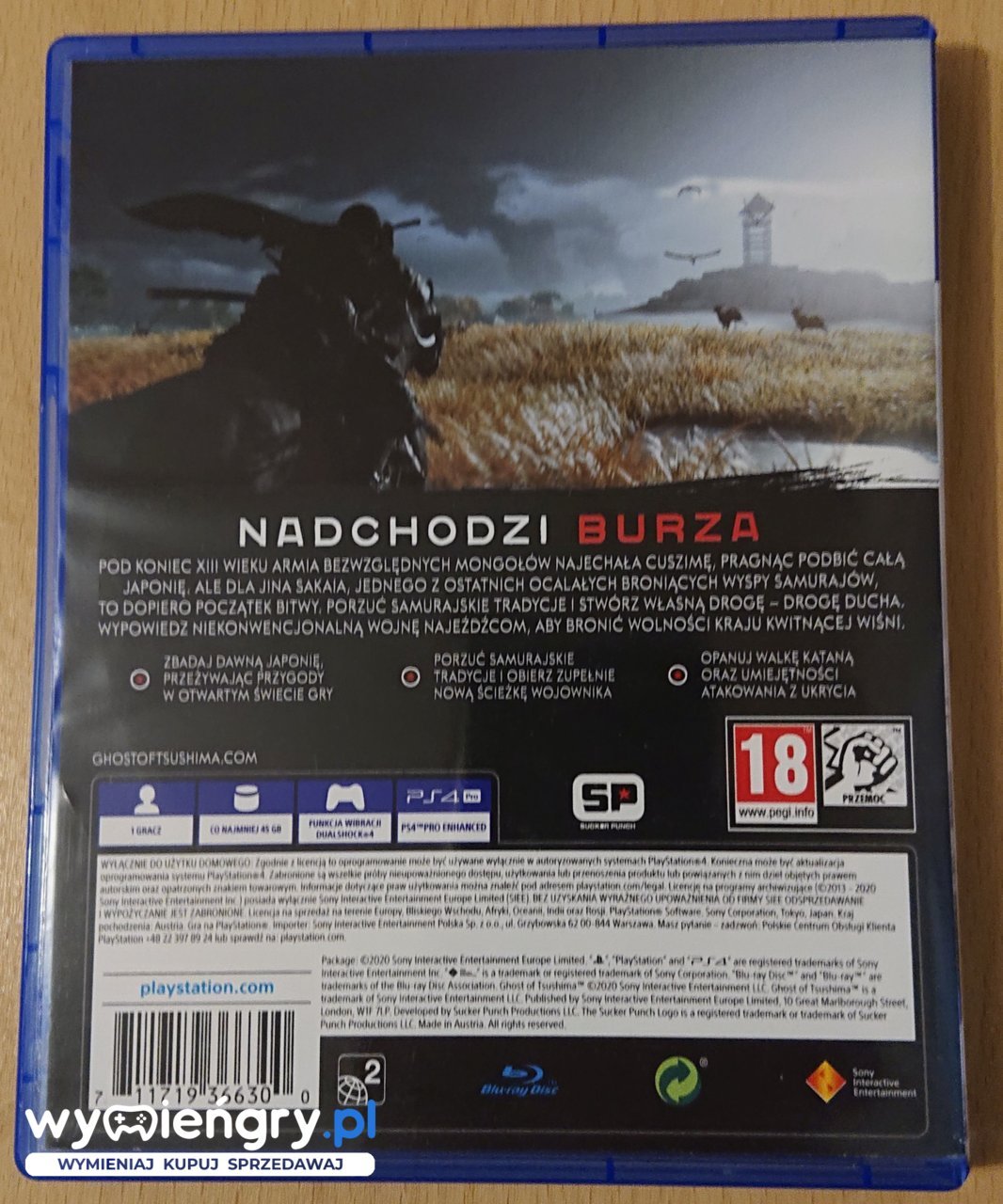 Przenieś się w czasie do feudalnej Japonii w grze Ghost of Tsushima i staw czoła najeźdźcom mongolskim. Wciel się w Jin Sakaia, samuraja, który staje się duchem śmiercionośnego mściciela. Wykorzystaj swoje umiejętności walki, kamuflażu i strategiczne podejście, by ocalić Tsushimę. Odkryj rozległy, piękny świat inspirowany japońską kulturą, eksploruj malownicze krajobrazy i poznaj tajemnice dawnej sztuki wojennej. Twoje wybory zdefiniują twoją ścieżkę w tym epickim starciu honoru i przeznaczenia.