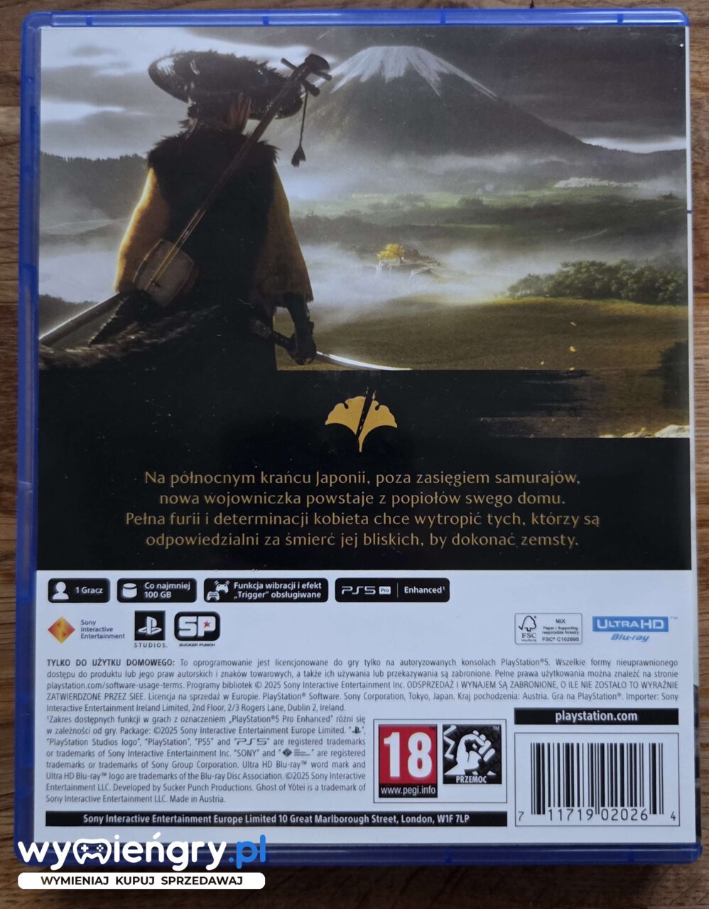 Druga część bestsellerowej serii przygodowych gier akcji TPP osadzonych w feudalnej Japonii. Ghost of Yotei nie jest bezpośrednią kontynuacją Ghost of Tsushima. Ghost of Yotei przenosi nas do Japonii z 1603 roku (300 lat po przygodzie Jina Sakai). Główną bohaterką gry jest Atsu, z kolei nasi główni wrogowie to gang znany jako Szóstka z Yotei. Przed szesnastoma laty jego członkowie (Wąż, Oni, Kitsune, Pająk, Smok i Lord Saito) wymordowali rodzinę głównej bohaterki, zaś ją samą zostawili na pewną śmierć. Protagonistka cudem przeżyła i uciekła z ojczyzny, by po latach spędzonych na nauce walki, polowania oraz zabijania powrócić na jej łono i dokonać zemsty na swoich oprawcach. Ścieżka, którą podąża Atsu, sprawia, że mieszkańcy Ezo widzą w niej Onryo – ducha zemsty.
