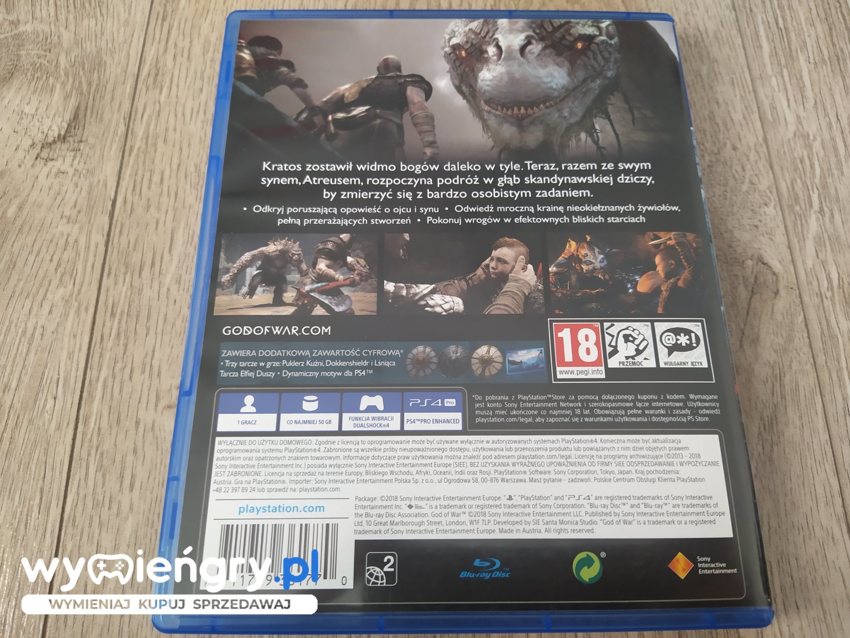 God of War na PlayStation 4 jest piątą pełnoprawną odsłoną legendarnej serii slasherów God of War i pierwszą w całości przygotowaną z myślą o konsoli ósmej generacji. Cykl God Of War niezmiennie nastawiony jest na widowiskową krwawą akcję oraz efektowny model walki z potężnymi bossami. Edycja Day One zawiera pełną wersję gry God of War oraz pakiet dodatków: dynamiczny motyw do menu konsoli, tarczę Buckler of the Forg i tarczę Dokkenshieldrtarczę Shining Elven Soul.