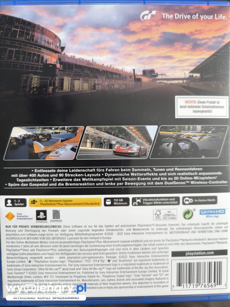 Przygotuj się na najrealistyczniejsze i najbardziej ekscytujące wyścigi w Gran Turismo 7. Wciel się w kierowcę wyścigowego i odkryj świat pełen doskonałych samochodów, precyzyjnie odwzorowanych tras i intensywnych emocji. Kieruj potężnymi maszynami, mierząc się z rywalami na legendarnych torach z całego świata. Zanurz się w trybie kariery, doskonal swoje umiejętności i zdobywaj kolejne trofea. Gran Turismo 7 to gra, która przeniesie cię w świat szybkości i pasji motosportu, dając niezapomniane wrażenia z jazdy na skraju możliwości.