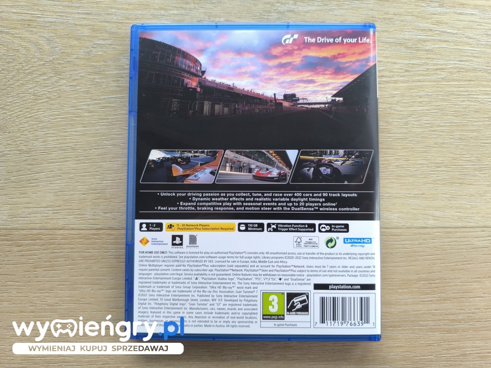 Przygotuj się na najrealistyczniejsze i najbardziej ekscytujące wyścigi w Gran Turismo 7. Wciel się w kierowcę wyścigowego i odkryj świat pełen doskonałych samochodów, precyzyjnie odwzorowanych tras i intensywnych emocji. Kieruj potężnymi maszynami, mierząc się z rywalami na legendarnych torach z całego świata. Zanurz się w trybie kariery, doskonal swoje umiejętności i zdobywaj kolejne trofea. Gran Turismo 7 to gra, która przeniesie cię w świat szybkości i pasji motosportu, dając niezapomniane wrażenia z jazdy na skraju możliwości.