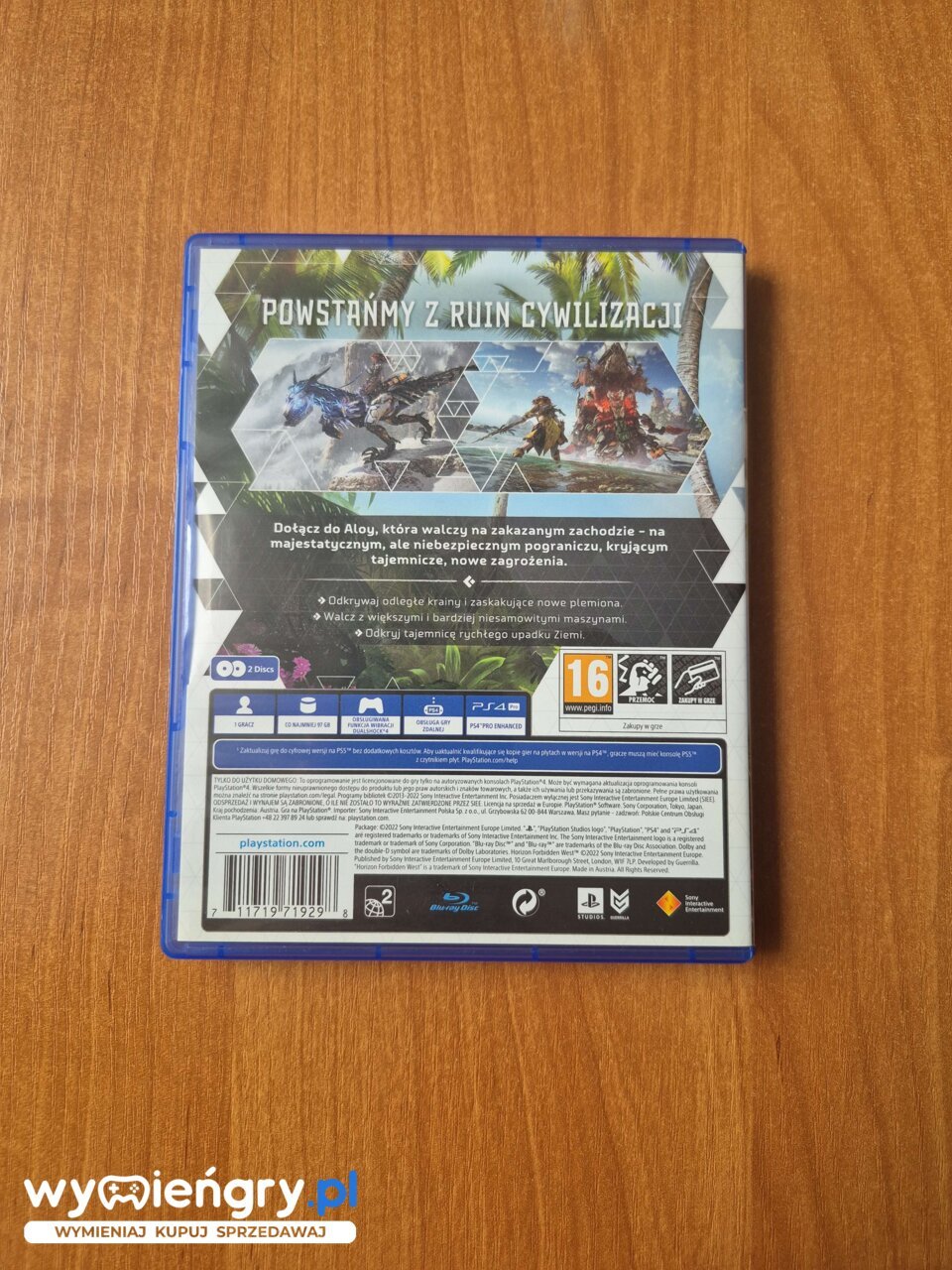 Horizon: Forbidden West to kontynuacji niesamowitego przeboju Horizon: Zero Dawn, który w 2017 roku zdobył status bestsellera. Wyrusz w niezwykłą podróż przez zakazany Zachód, odkrywając zapierający dech w piersiach świat Horizon Forbidden West. Wciel się w Aloy, waleczną łowczynię, i zmierz się z mrocznymi tajemnicami, jakie skrywa przyszłość naszej cywilizacji. Pokonuj potężne maszyny, eksploruj dzikie tereny i poznawaj różnorodne plemiona. Odważ się odkryć prawdę, która odmieni losy świata i zapewni przetrwanie ludzkości. Czekają na Ciebie niezapomniane przygody i niezliczone wyzwania w tym niesamowitym, postapokaliptycznym uniwersum.