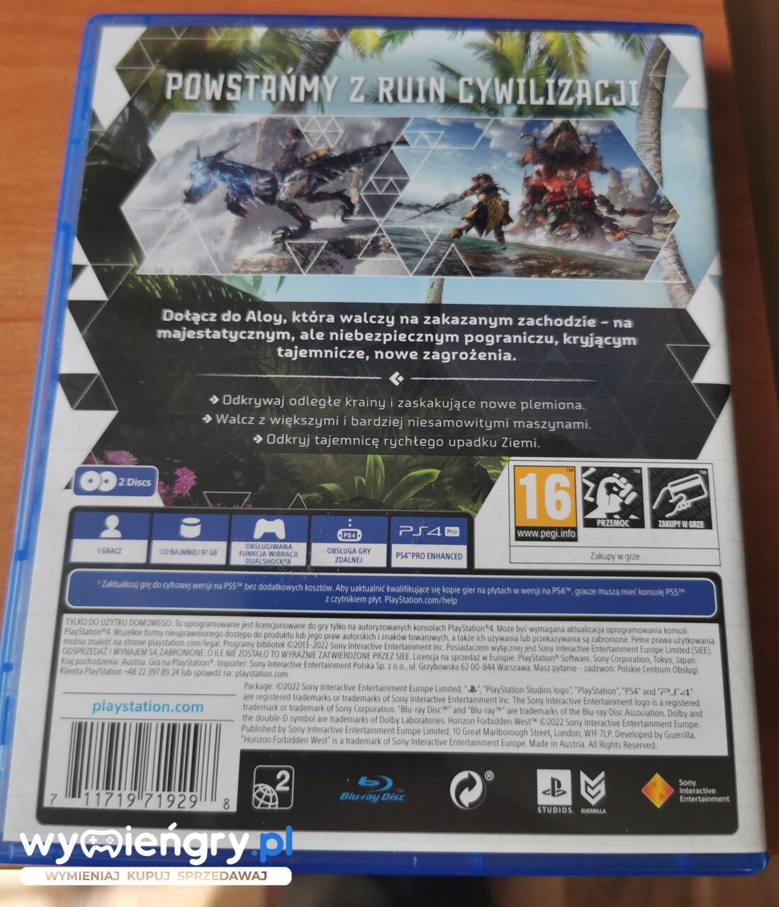 Horizon: Forbidden West to kontynuacji niesamowitego przeboju Horizon: Zero Dawn, który w 2017 roku zdobył status bestsellera. Wyrusz w niezwykłą podróż przez zakazany Zachód, odkrywając zapierający dech w piersiach świat Horizon Forbidden West. Wciel się w Aloy, waleczną łowczynię, i zmierz się z mrocznymi tajemnicami, jakie skrywa przyszłość naszej cywilizacji. Pokonuj potężne maszyny, eksploruj dzikie tereny i poznawaj różnorodne plemiona. Odważ się odkryć prawdę, która odmieni losy świata i zapewni przetrwanie ludzkości. Czekają na Ciebie niezapomniane przygody i niezliczone wyzwania w tym niesamowitym, postapokaliptycznym uniwersum.