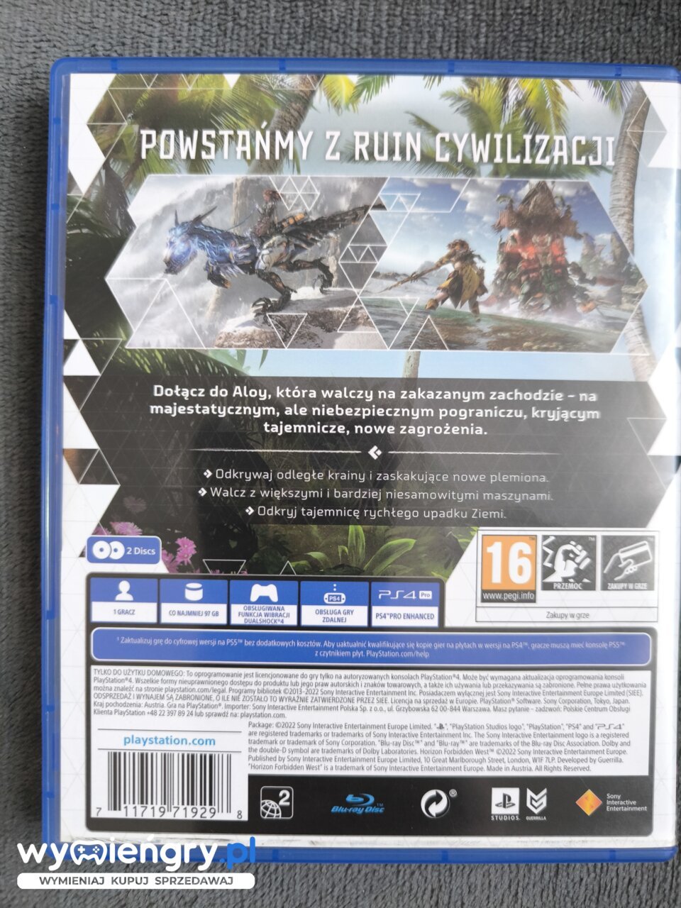 Horizon: Forbidden West to kontynuacji niesamowitego przeboju Horizon: Zero Dawn, który w 2017 roku zdobył status bestsellera. Wyrusz w niezwykłą podróż przez zakazany Zachód, odkrywając zapierający dech w piersiach świat Horizon Forbidden West. Wciel się w Aloy, waleczną łowczynię, i zmierz się z mrocznymi tajemnicami, jakie skrywa przyszłość naszej cywilizacji. Pokonuj potężne maszyny, eksploruj dzikie tereny i poznawaj różnorodne plemiona. Odważ się odkryć prawdę, która odmieni losy świata i zapewni przetrwanie ludzkości. Czekają na Ciebie niezapomniane przygody i niezliczone wyzwania w tym niesamowitym, postapokaliptycznym uniwersum.