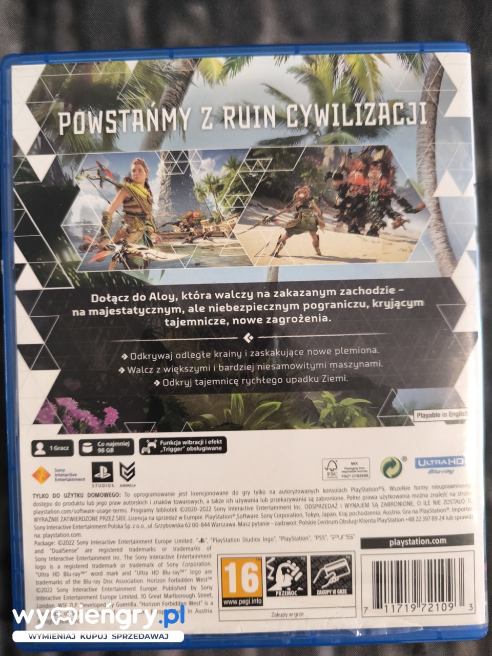 Horizon: Forbidden West to kontynuacji niesamowitego przeboju Horizon: Zero Dawn, który w 2017 roku zdobył status bestsellera. Wyrusz w niezwykłą podróż przez zakazany Zachód, odkrywając zapierający dech w piersiach świat Horizon Forbidden West. Wciel się w Aloy, waleczną łowczynię, i zmierz się z mrocznymi tajemnicami, jakie skrywa przyszłość naszej cywilizacji. Pokonuj potężne maszyny, eksploruj dzikie tereny i poznawaj różnorodne plemiona. Odważ się odkryć prawdę, która odmieni losy świata i zapewni przetrwanie ludzkości. Czekają na Ciebie niezapomniane przygody i niezliczone wyzwania w tym niesamowitym, postapokaliptycznym uniwersum.